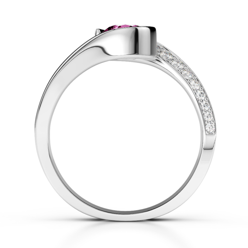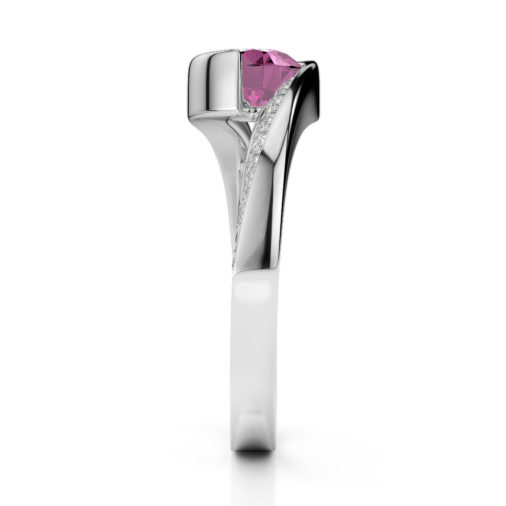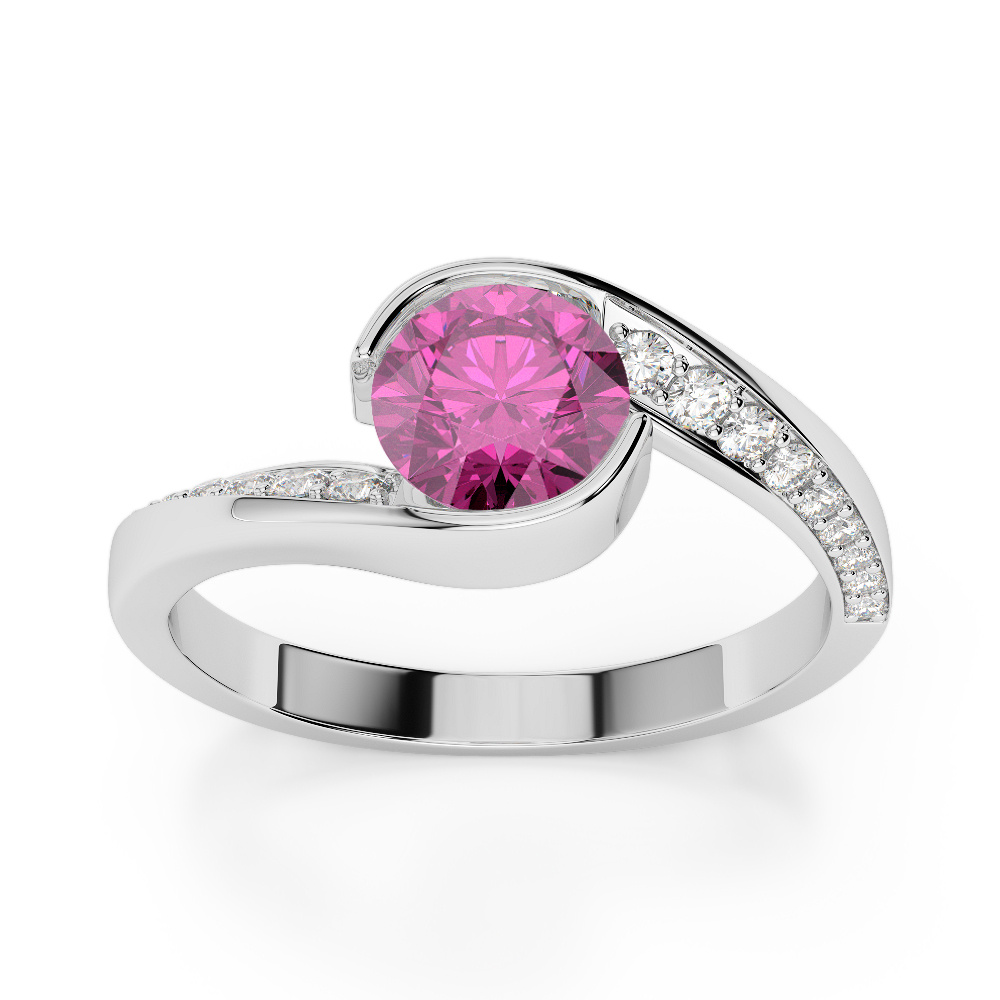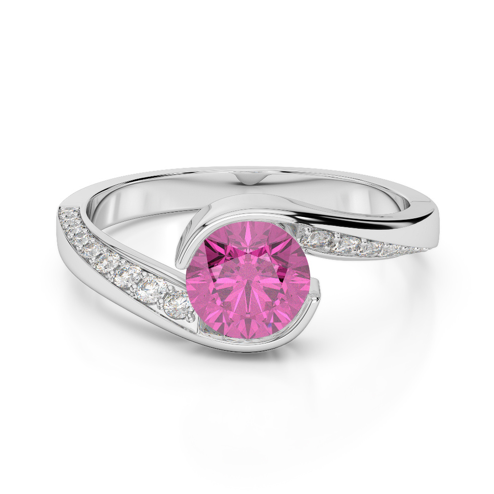 Bezel Set Pink Sapphire & Prong Set Diamond Engagement Ring 0267