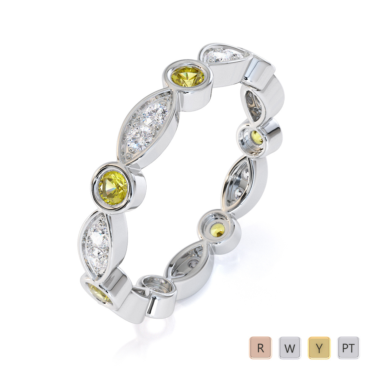 Bezel Set Yellow Sapphire & Prong Set Diamond Full Eternity Ring 0434