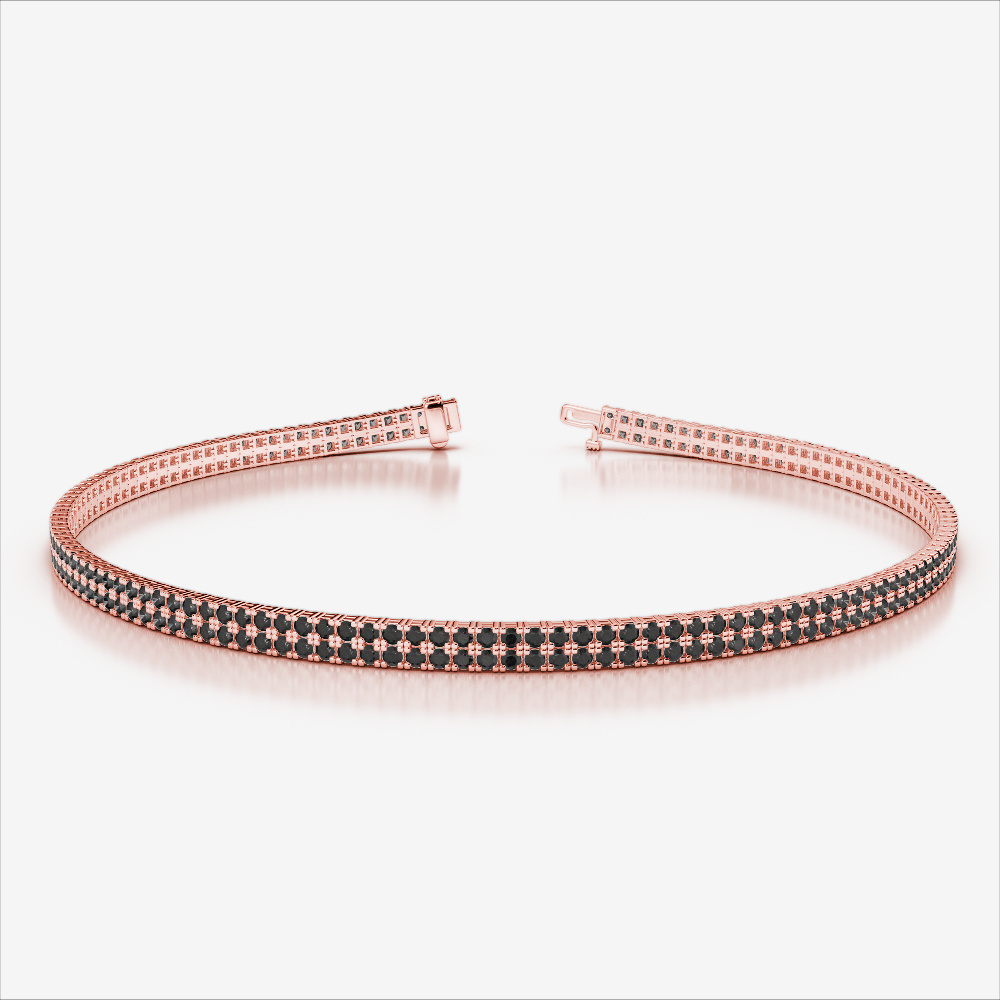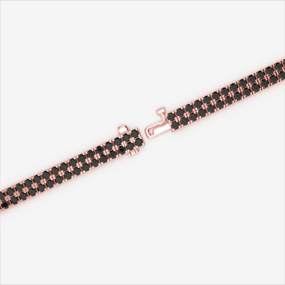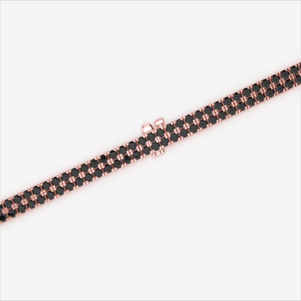This Double Row Pave Set Round Cut Black Diamond Tennis Bracelet features Black Diamonds that offer maximum sparkle. The classic design ensures it's suitable for any occasion, providing lasting beauty with a refined, modern twist.