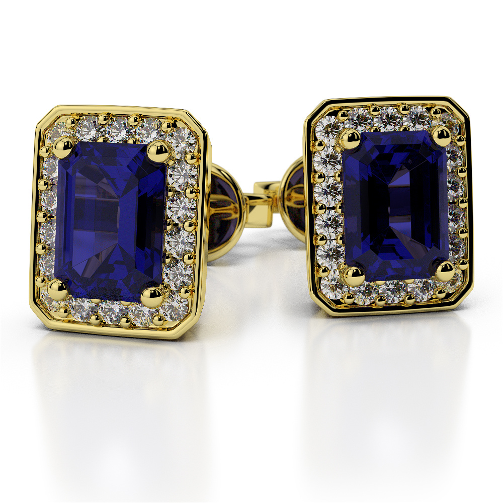 Emerald Shape Blue Sapphire Diamond Earrings are a one-of-a-kind and fashionable item that will elevate any ensemble. They have a screw-back lock system and a prong setting, with a halo encircling the centre Blue Sapphire to keep the earrings securely in place. The Blue Sapphire's centre is accented with glittering round brilliant diamonds, creating the ideal combination of sparkle and elegance. Ideal for birthdays, anniversaries, or simply to show affection.
