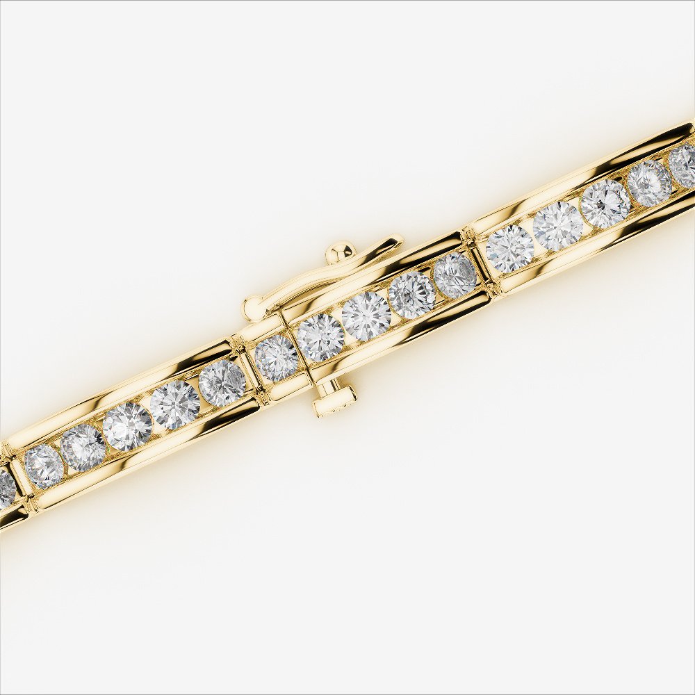 The Round Cut Diamond Tennis Bracelet features expertly channel set diamonds that shine with exceptional clarity and fire. Designed to highlight each stone’s brilliance, this bracelet delivers elegance and sparkle in a graceful silhouette.