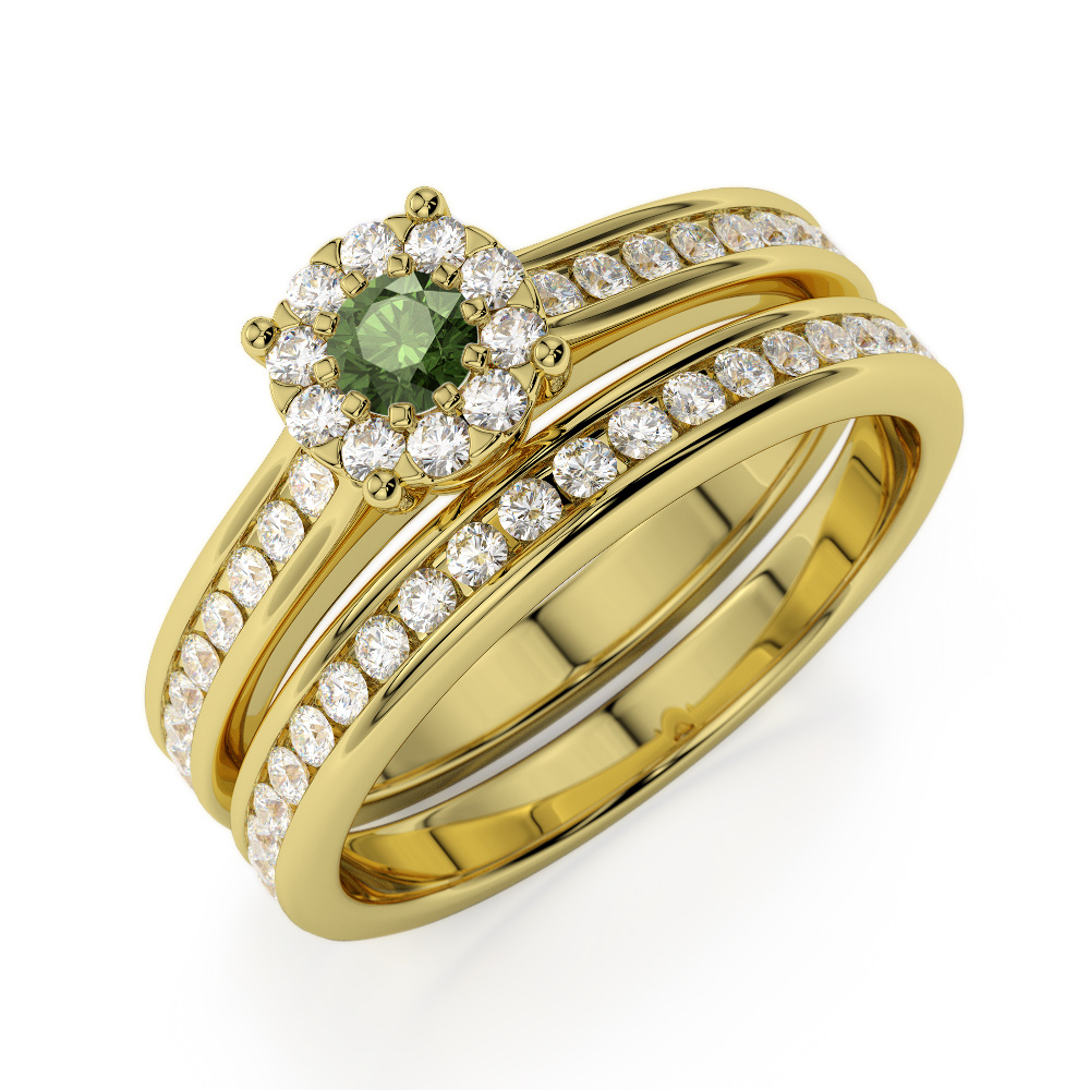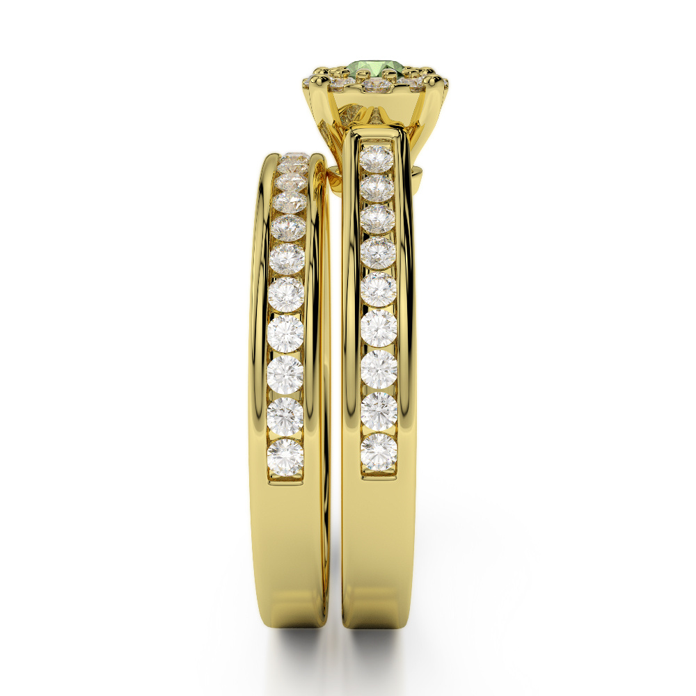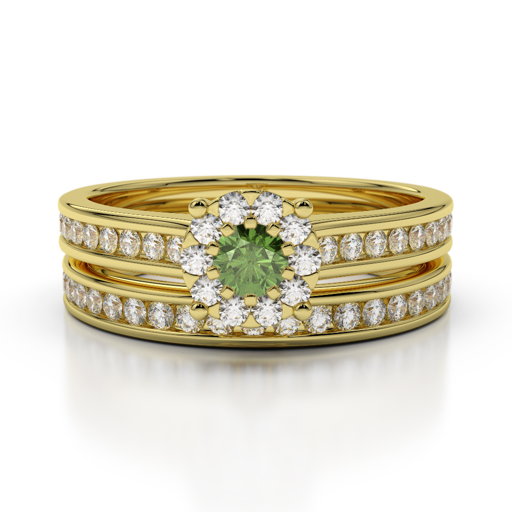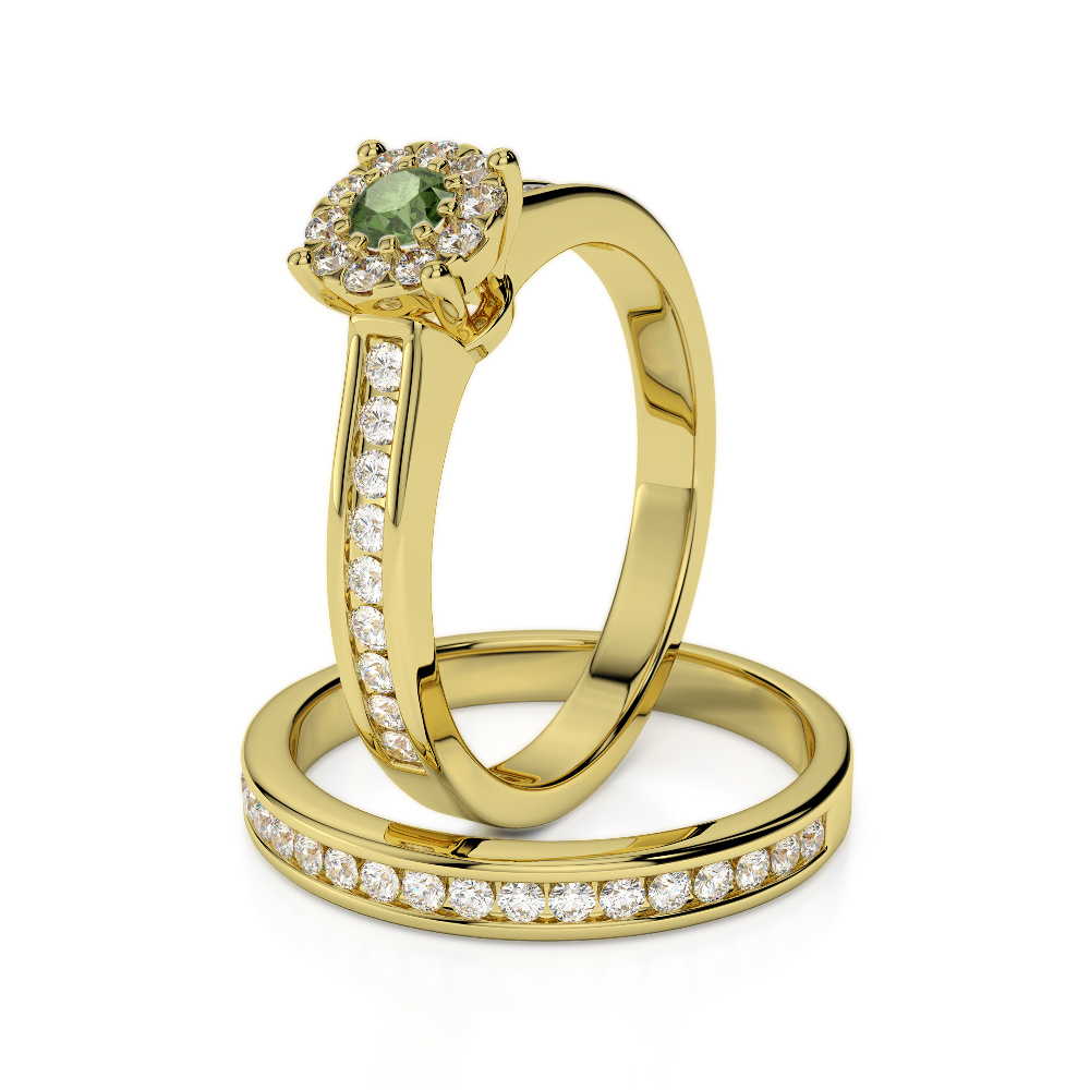 Channel Set Diamond & Prong Set Green Tourmaline Bridal Set Ring 0323