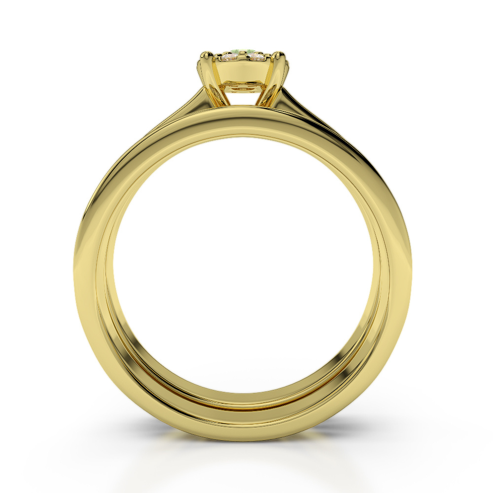 Introducing our exquisite Bridal Set Ring with Prong and Channel Setting, a perfect symbol of eternal love and commitment. This stunning green tourmaline bridal set and wedding band set is designed to captivate and enchant. Crafted with meticulous attention to detail, the sparkling diamonds are elegantly arranged in a combination of prong and channel settings, creating a breathtaking display of brilliance. With its timeless design and exceptional craftsmanship, this bridal set is sure to make your special day even more memorable.