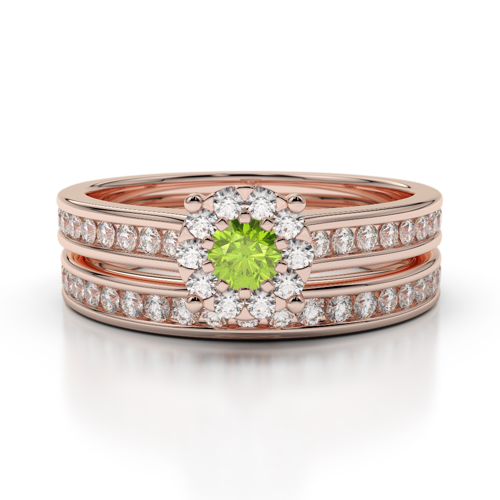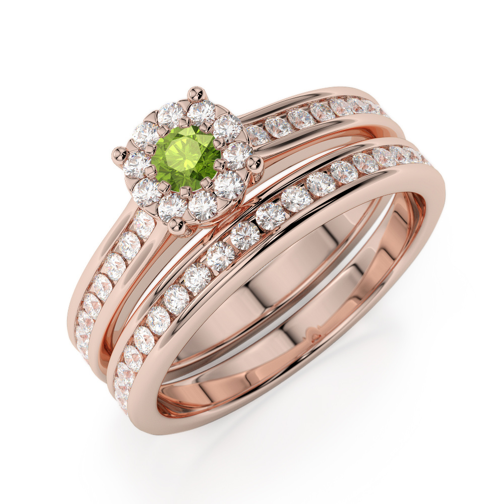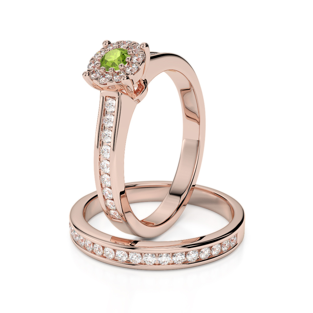 Channel Set Diamond & Prong Set Peridot Bridal Set Ring 0323