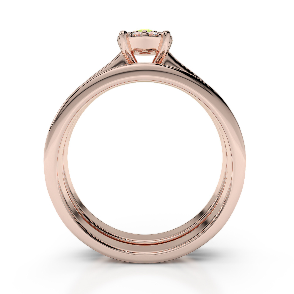 Introducing our exquisite Bridal Set Ring with Prong and Channel Setting, a perfect symbol of eternal love and commitment. This stunning peridot bridal set and wedding band set is designed to captivate and enchant. Crafted with meticulous attention to detail, the sparkling diamonds are elegantly arranged in a combination of prong and channel settings, creating a breathtaking display of brilliance. With its timeless design and exceptional craftsmanship, this bridal set is sure to make your special day even more memorable.
