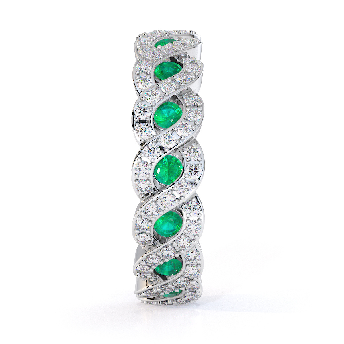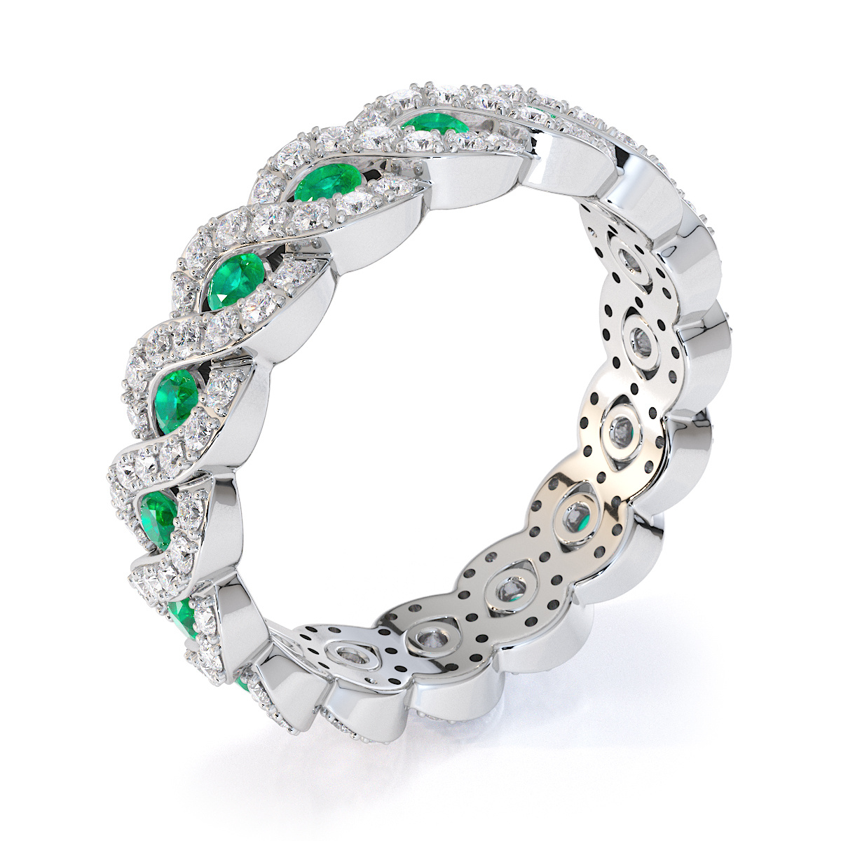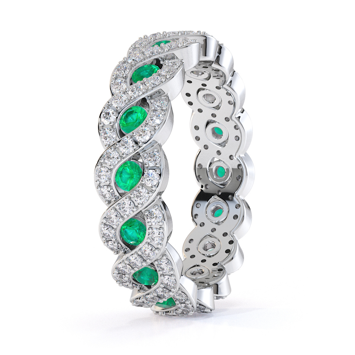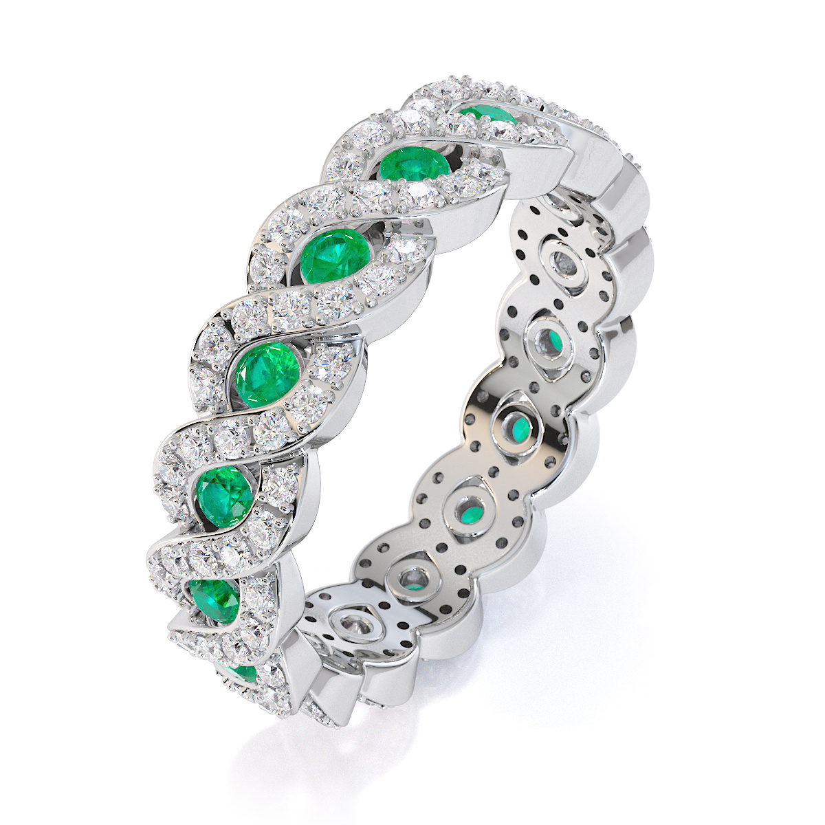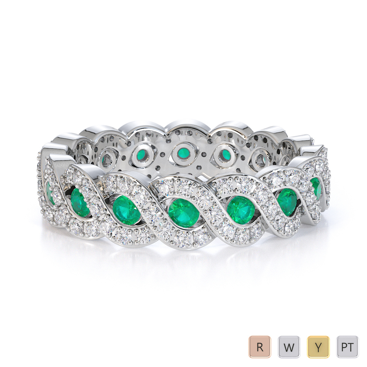Channel Set Emerald & Prong Set Diamond Full Eternity Ring 0456