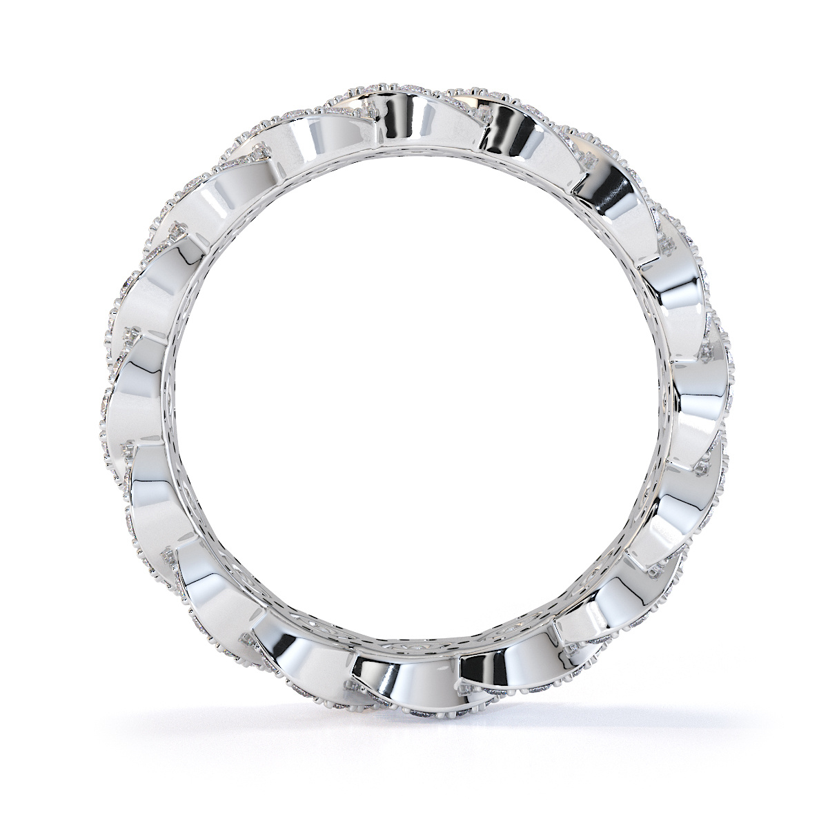 This full eternity ring features emeralds, symbolising elegance and sophistication. Crafted with precision, it combines prong and channel settings to securely hold the stones. The vibrant green hues captivate and mesmerise, making it a timeless piece that perfectly blends classic design with modern style — a must-have for any jewellery collection.