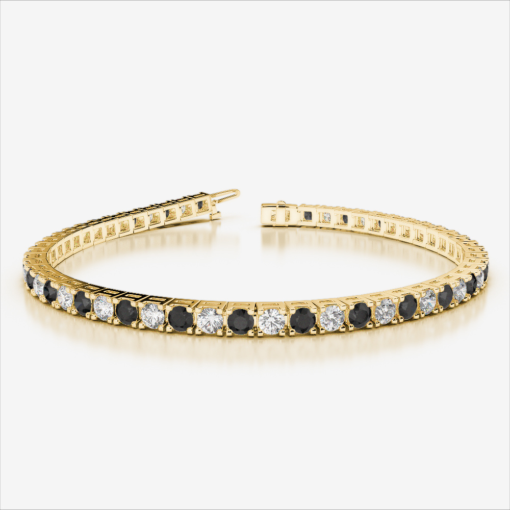 Step into elegance with our prong-set round-cut black diamond and diamond tennis bracelet. Designed to enchant, this piece blends the natural beauty of black diamonds with the radiance of diamonds. A true expression of refined taste, it complements every outfit. Whether gifted or self-selected, this bracelet becomes a cherished part of your collection—graceful, glowing, and unforgettable.