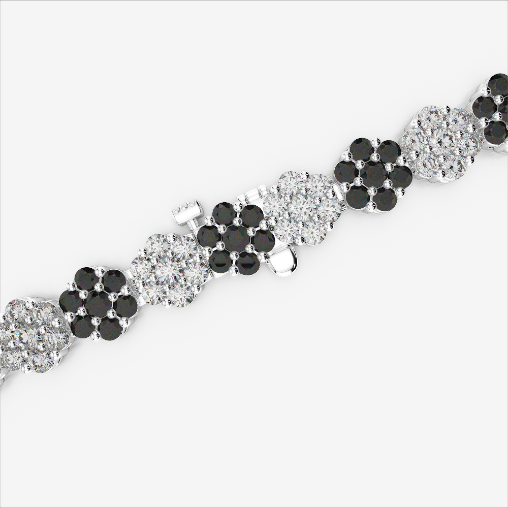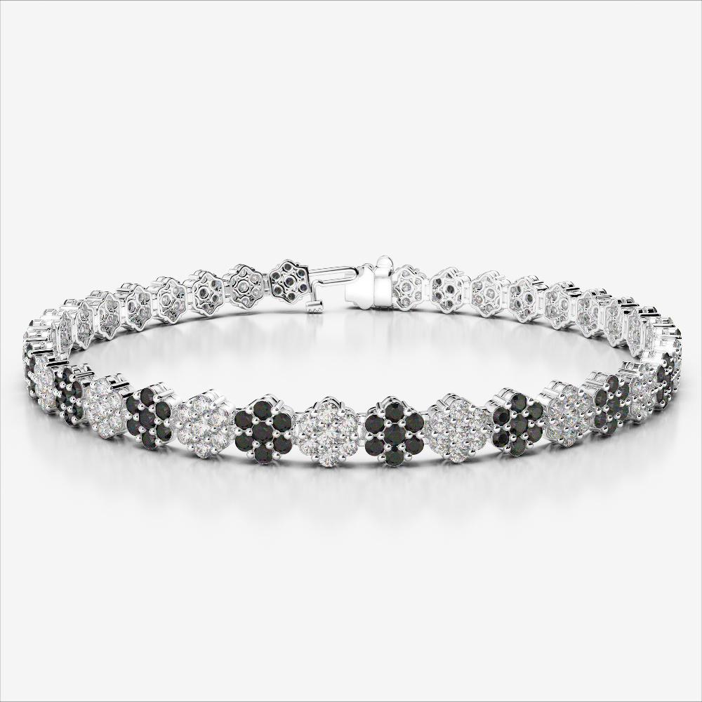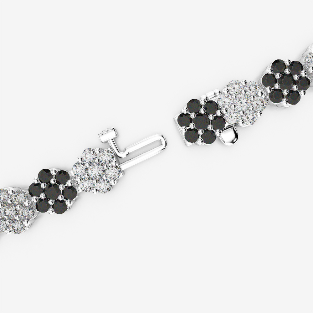 Let luxury embrace your wrist with our black diamond and round-cut diamond tennis bracelet, featuring a claw-set diamond and black diamond bracelet design. Prong-set to perfection, each gemstone captures light and attention alike. Rich Black black diamond pairs elegantly with brilliant diamonds for a timeless finish. Whether you’re celebrating love, success, or style, this bracelet is a graceful reminder of the finer things in life.