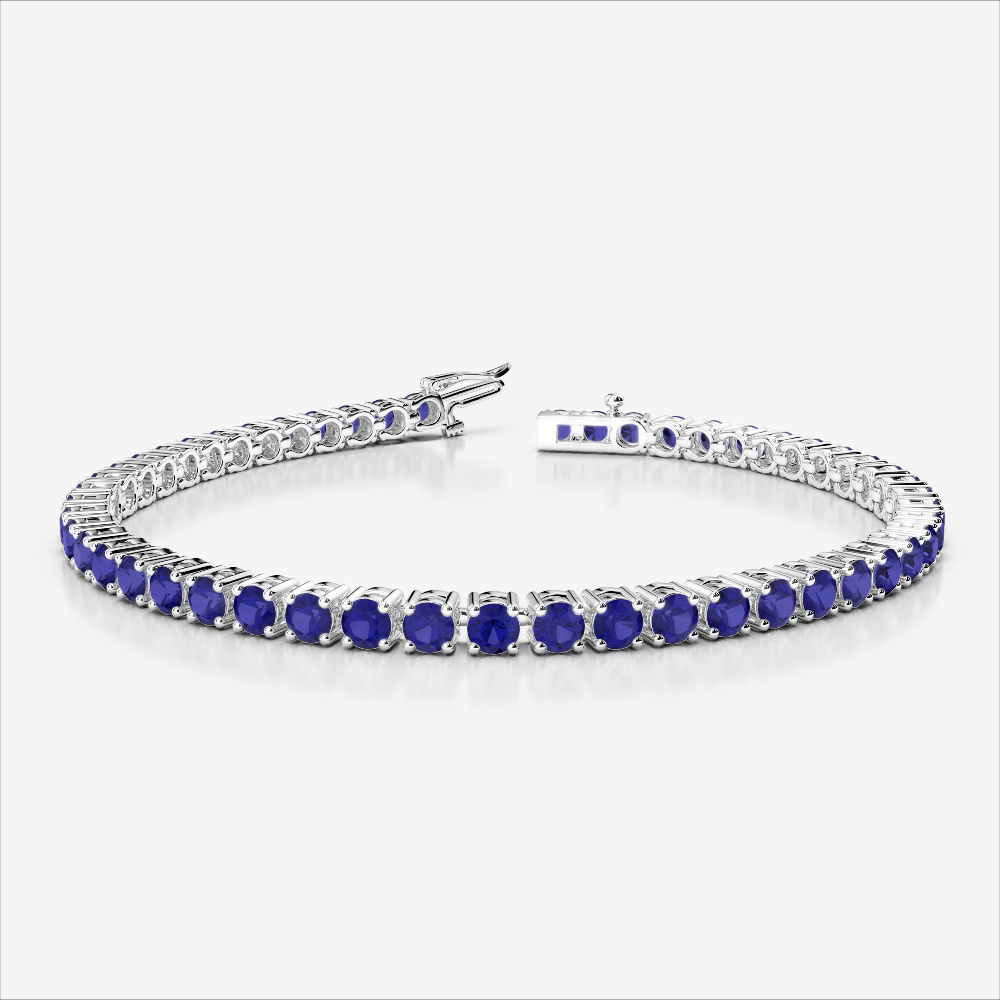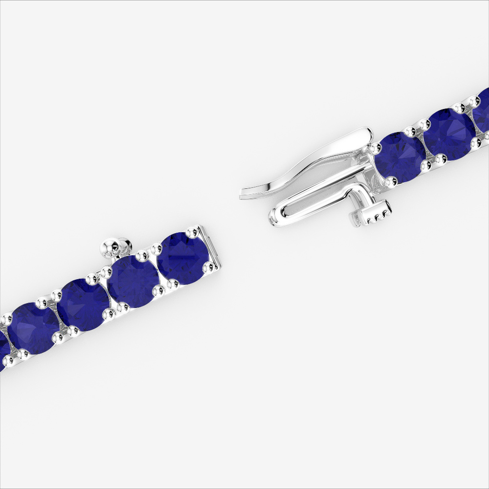 This Round Cut Blue Sapphire Tennis Bracelet exudes classic sophistication. Every Blue Sapphire is carefully chosen and securely prong-set to allow light to dance through, amplifying its natural radiance. An enduring piece of luxury, it reflects elegance and fine craftsmanship, perfect for both everyday elegance and special occasions.