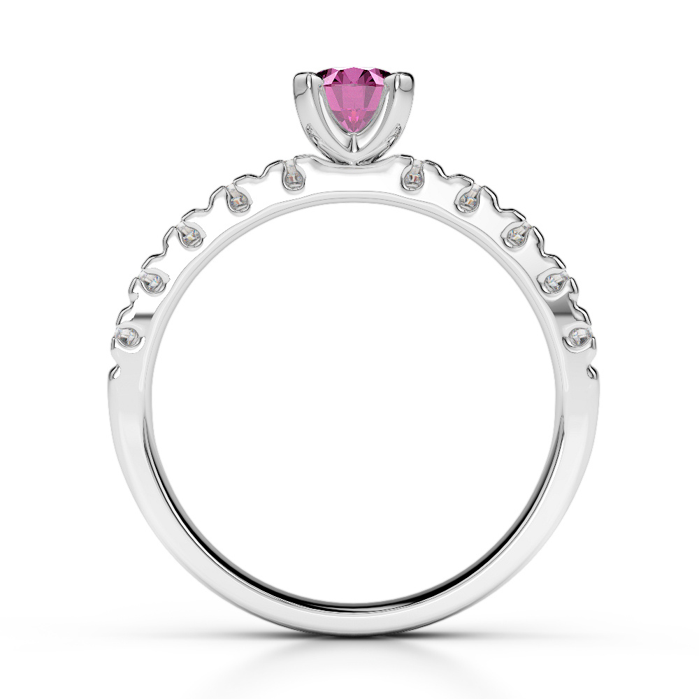 Claw Set Diamond Engagement Ring With Pink Sapphire 0233