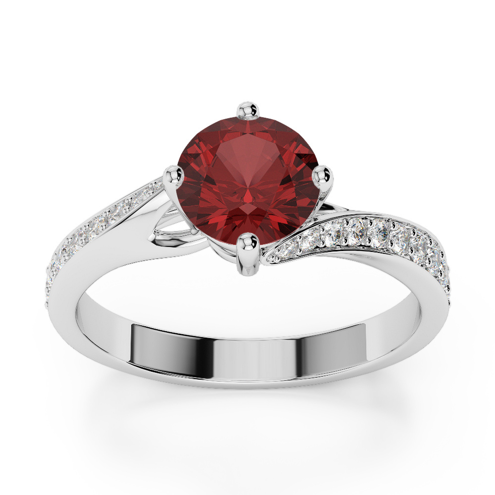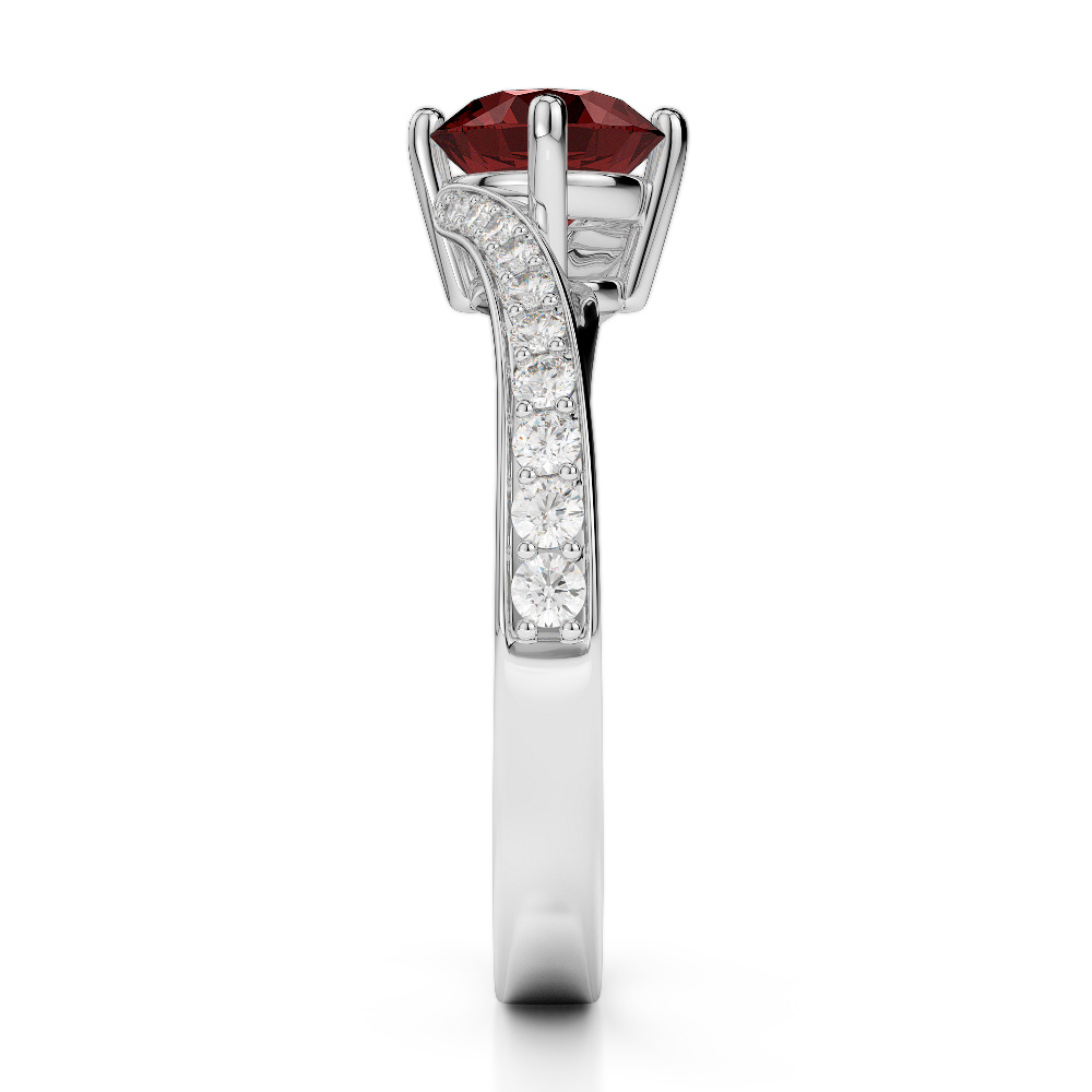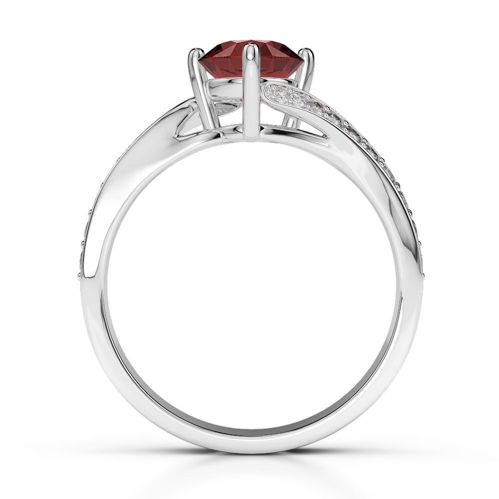 Discover elegance with our Garnet And Diamond Engagement Ring, showcasing a regal Garnet secured in a prong setting that enhances its brilliance by allowing light to flow through freely. Surrounded by shimmering diamonds, it radiates brilliance and timeless charm.