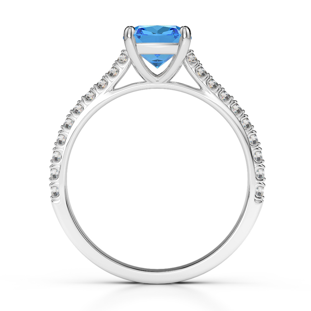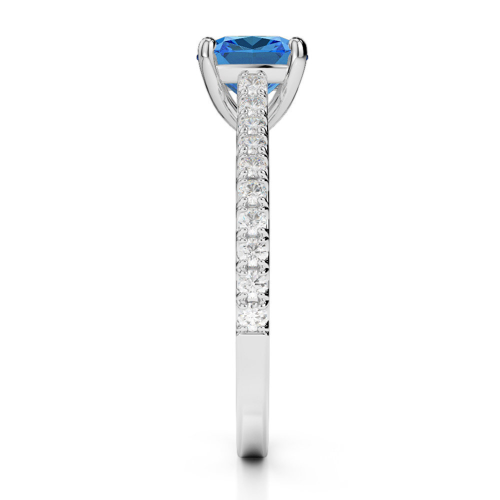 Discover the enchanting allure of our Cushion Cut Blue Topaz And Diamond Engagement Ring, featuring a regal Blue Topaz held in a secure prong setting. Surrounded by sparkling diamonds, it dazzles with brilliance and elegance from every angle—a true symbol of love and commitment.