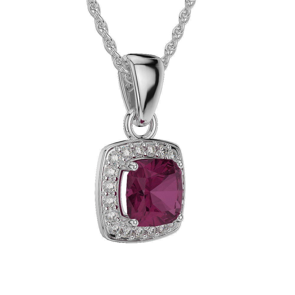 This stunning ruby and diamond pendant is a perfect blend of elegance and sophistication. Crafted with a cushion shape, it showcases the mesmerizing allure of ruby, complemented by the radiant sparkle of diamonds. The prong setting secures the stones, while the necklace design adds grace to any ensemble. Elevate your style with this timeless piece.