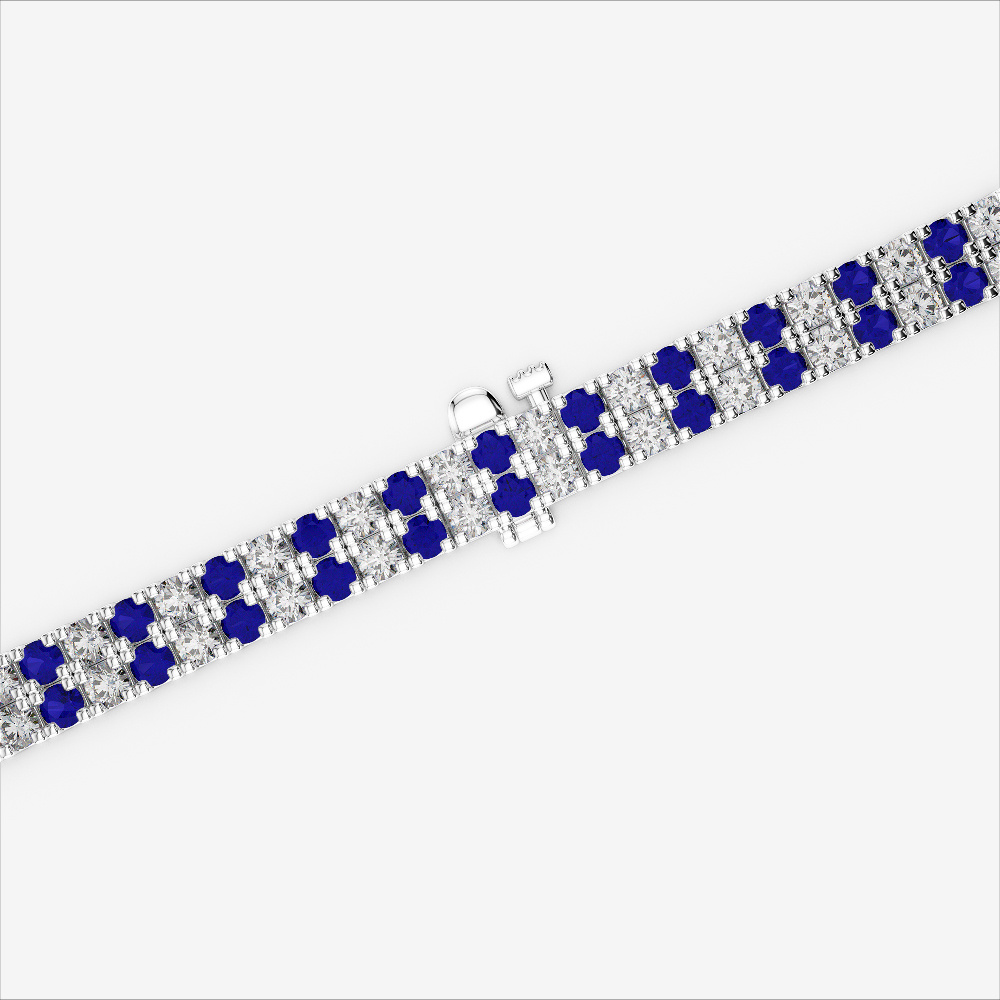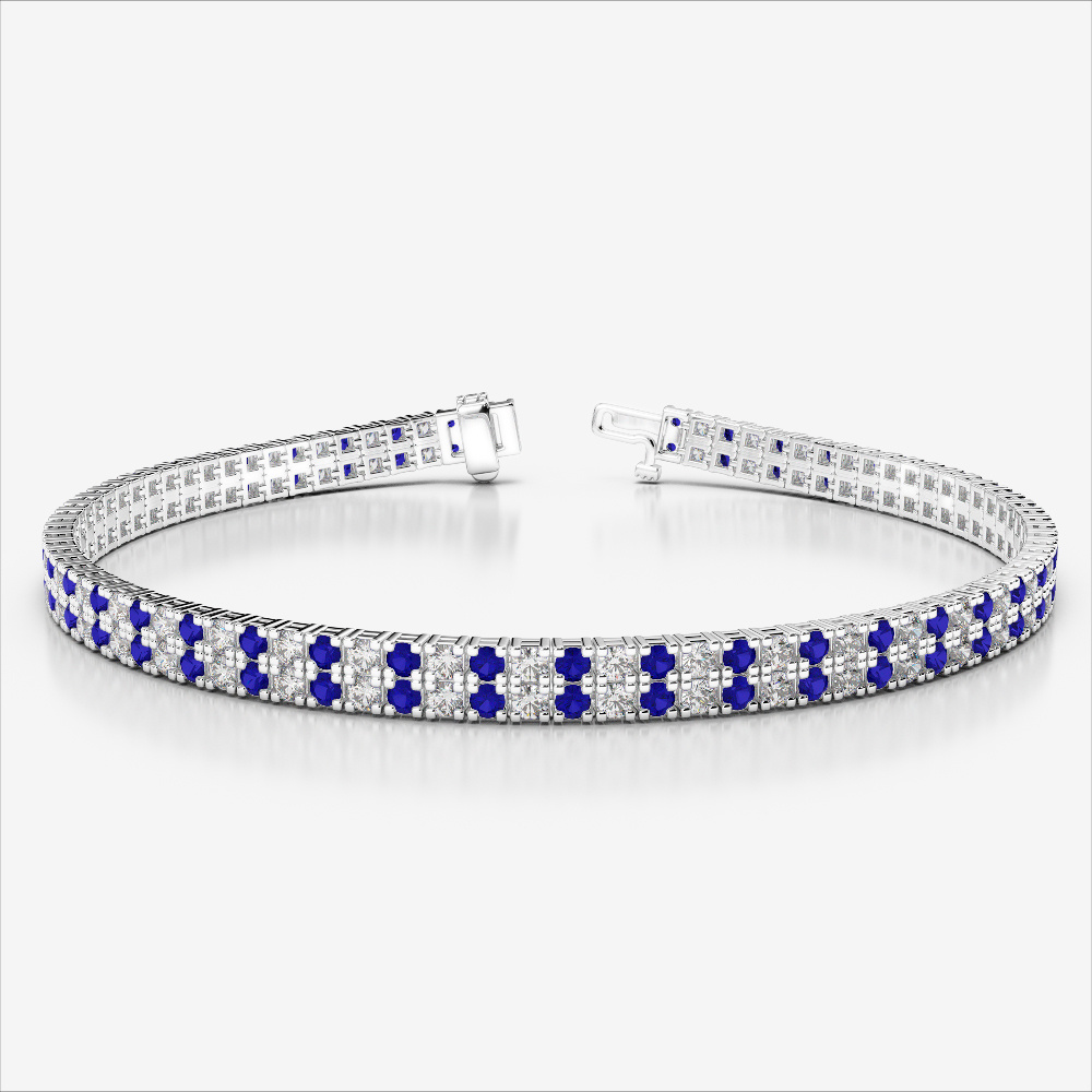 Double Row Prong Set Diamond & Blue Sapphire Bracelet 0749
