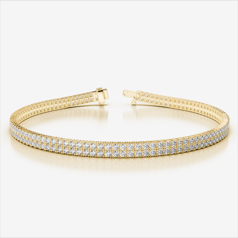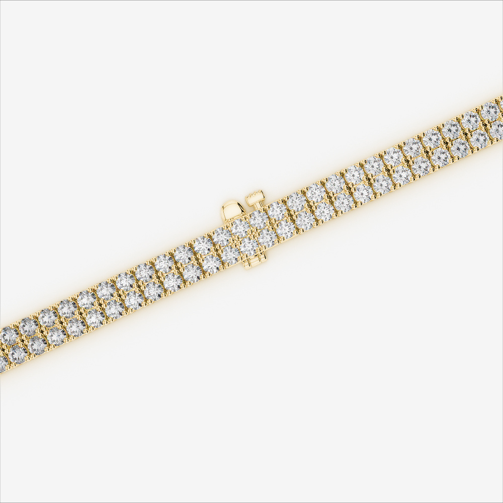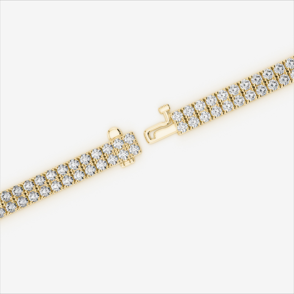 This Double Row Prong Set Round Cut Diamond Tennis Bracelet is a refined expression of luxury. Each diamond is hand-selected for brilliance, forming a continuous, sparkling band that embodies timeless grace and exquisite craftsmanship.