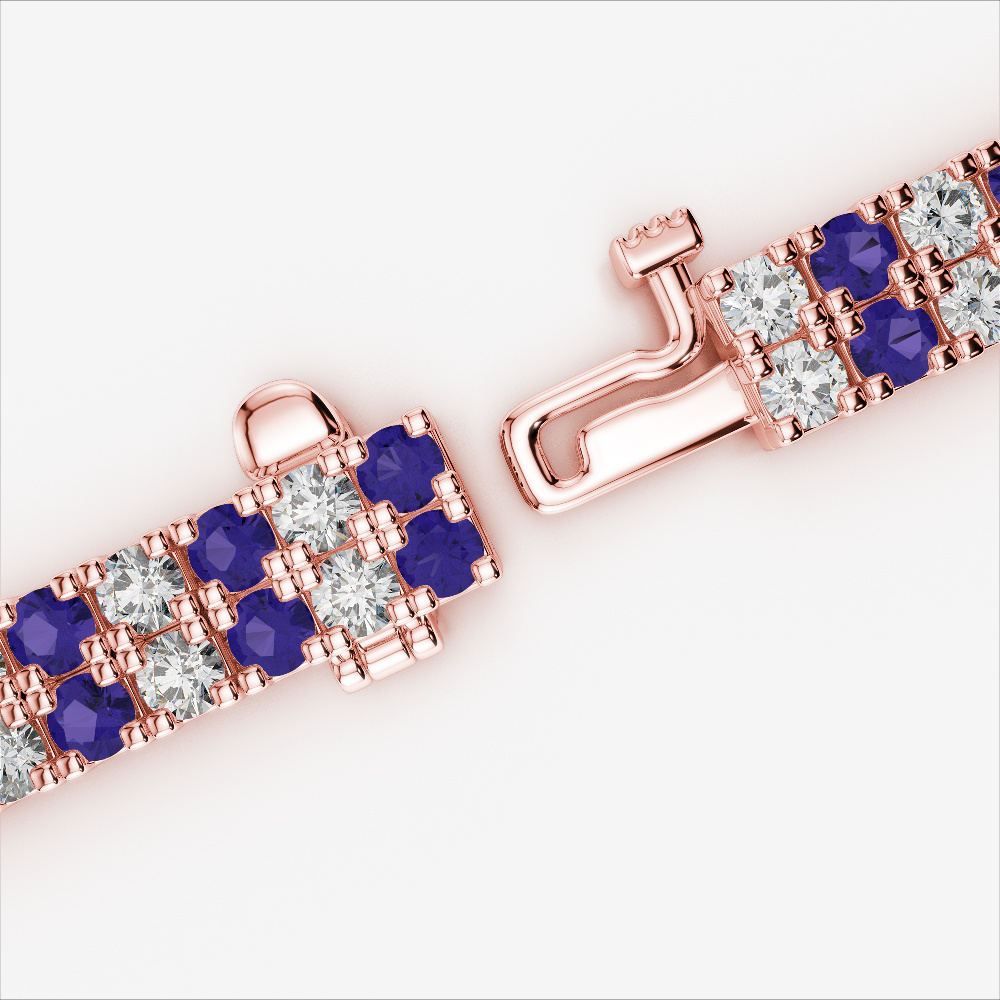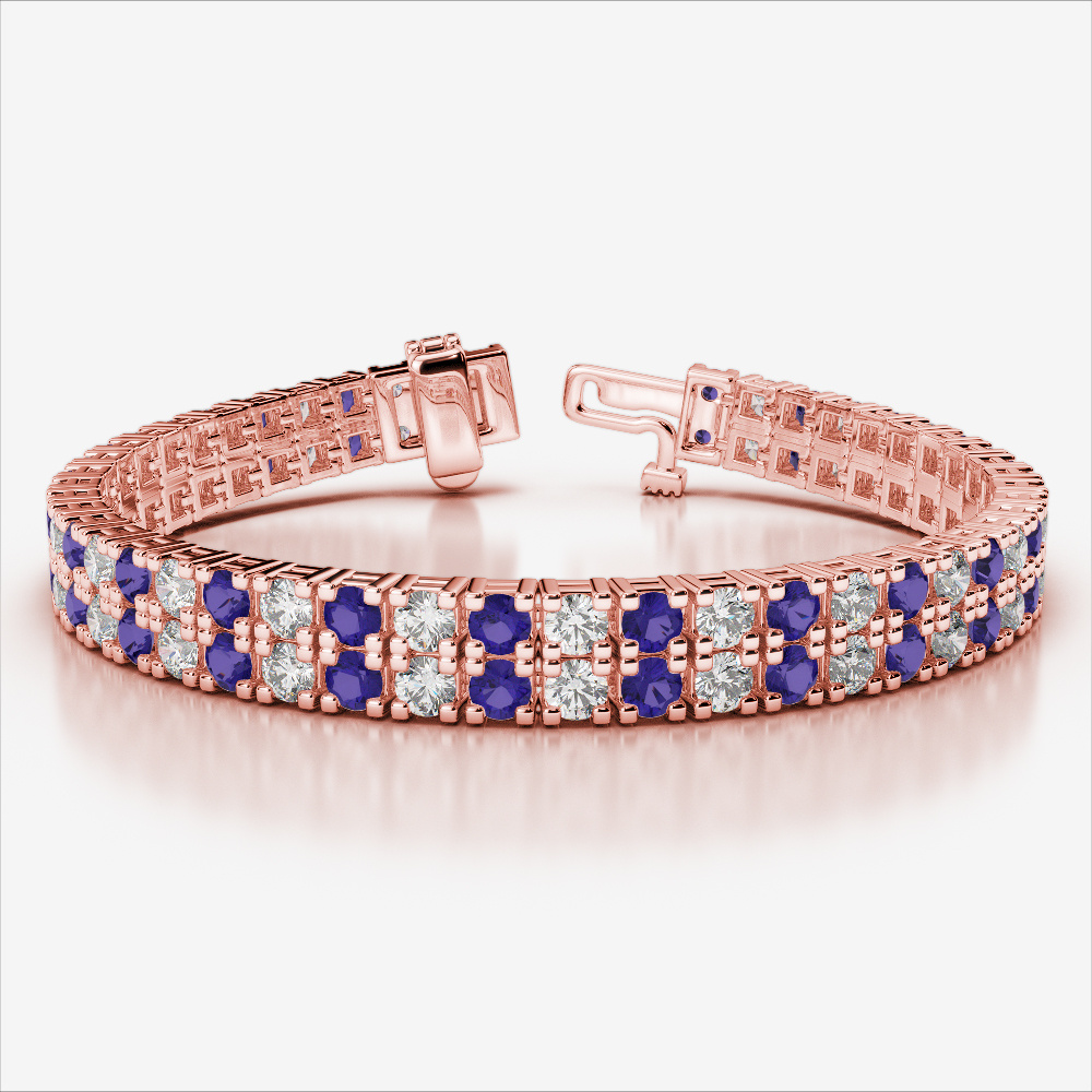 Wrap your wrist in elegance with our Double Row Prong Set tanzanite and diamond bracelet. Featuring prong-set round-cut stones that dazzle with every movement, this bracelet is made for those who appreciate luxury. It’s the ultimate gift to commemorate life’s most treasured moments.