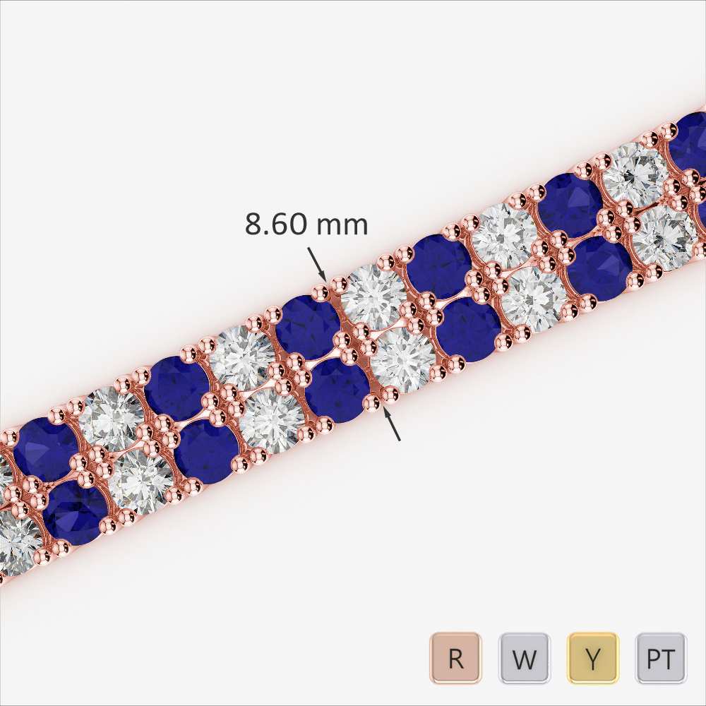 Double Row Round Cut Blue Sapphire & Diamond Bracelet 0746