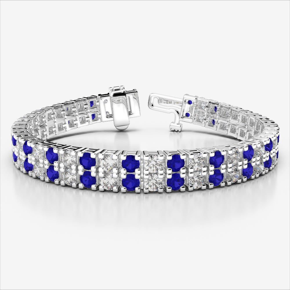 Double Row Round Cut Diamond & Blue Sapphire Bracelet 0757