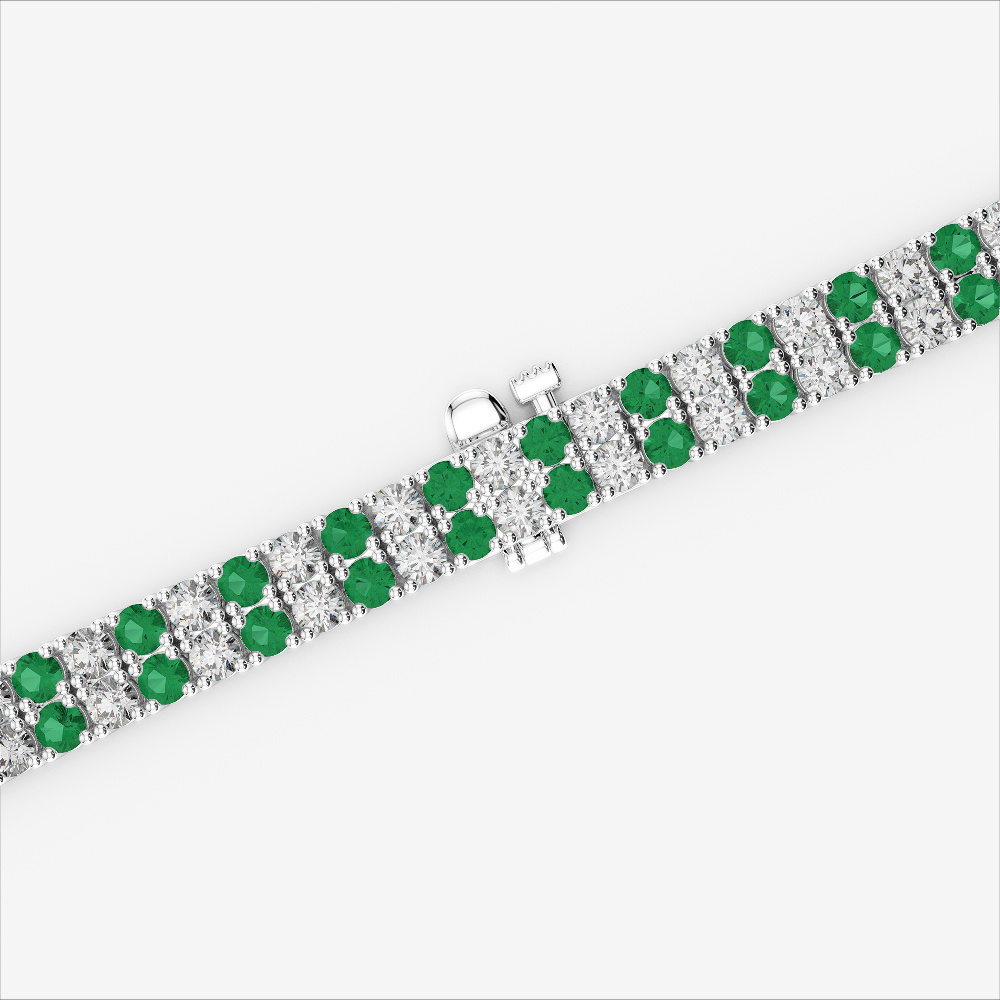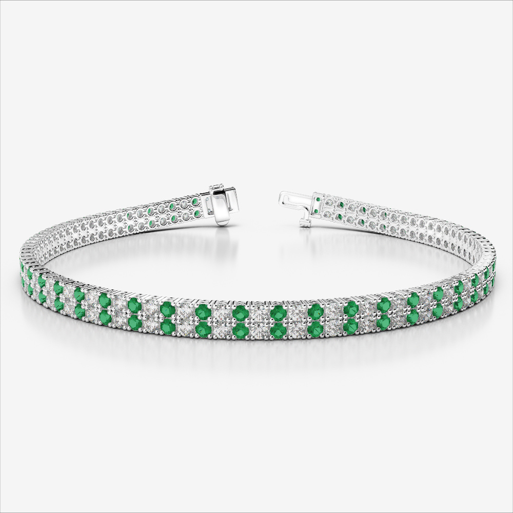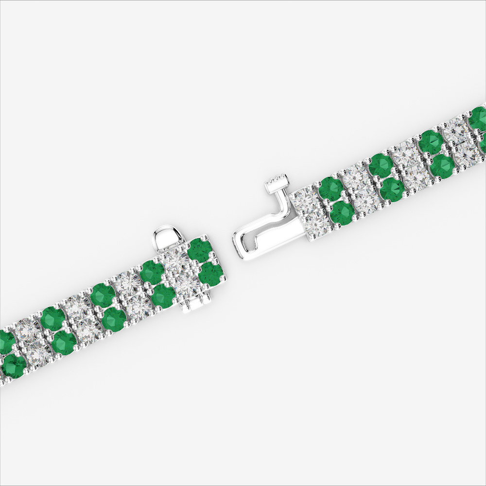 Double Row Round Cut Diamond & Emerald Bracelet 0738