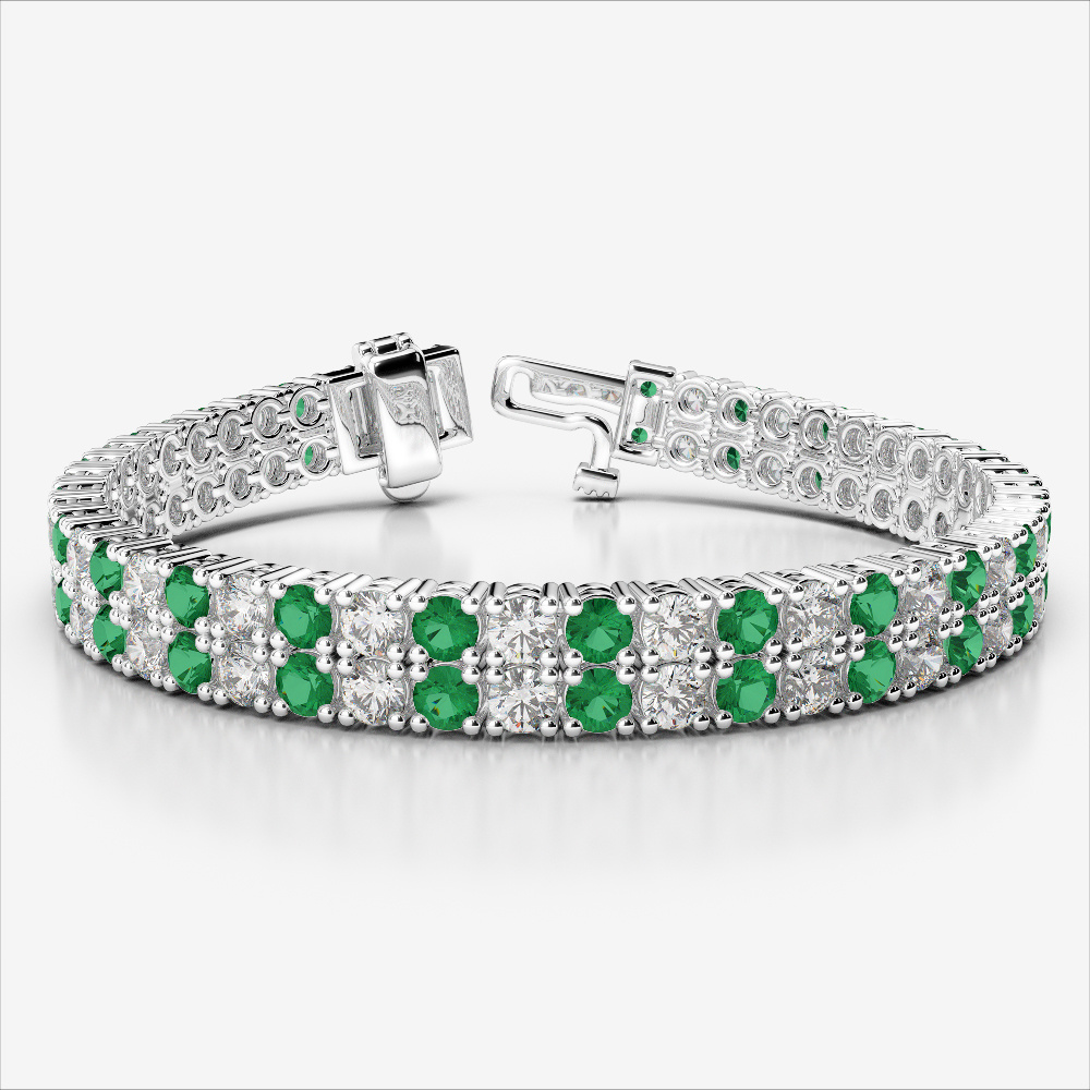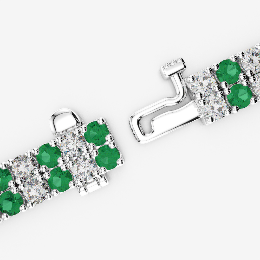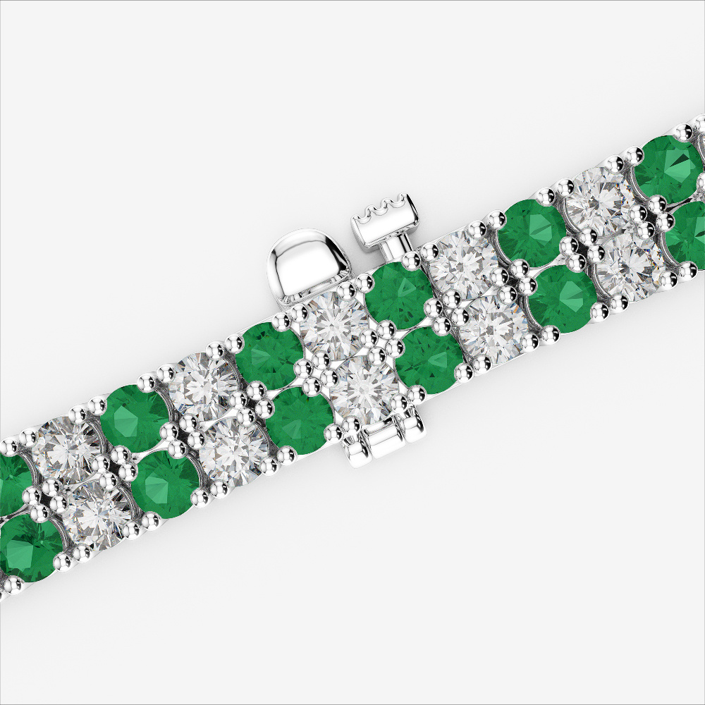 Double Row Round Cut Emerald & Diamond Bracelet 0746