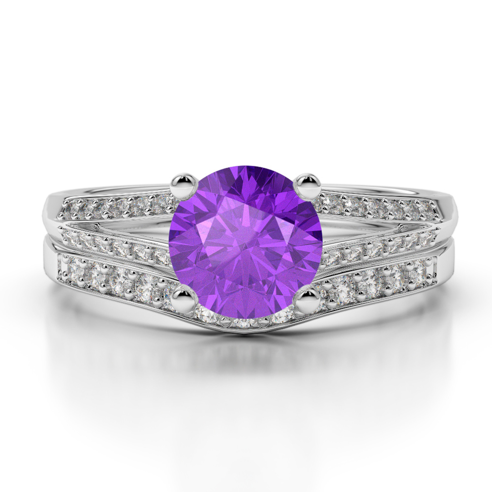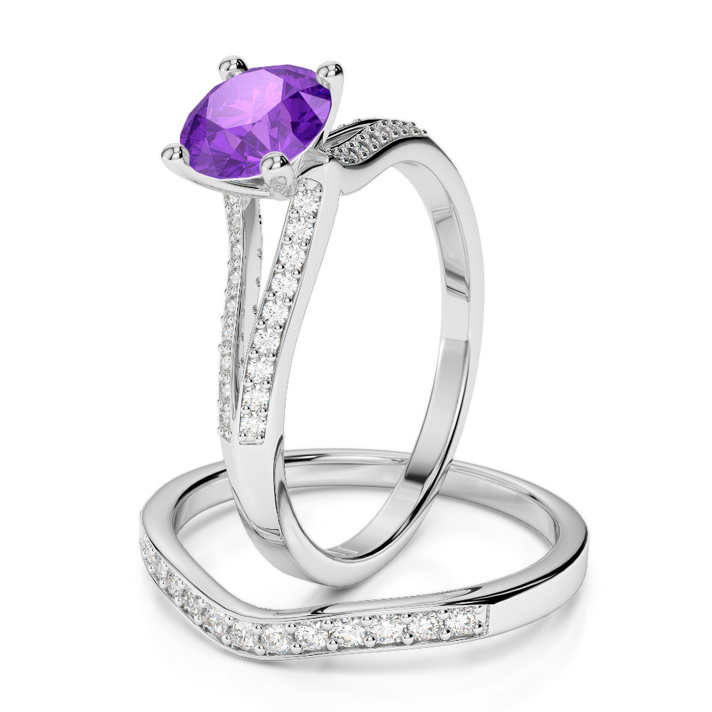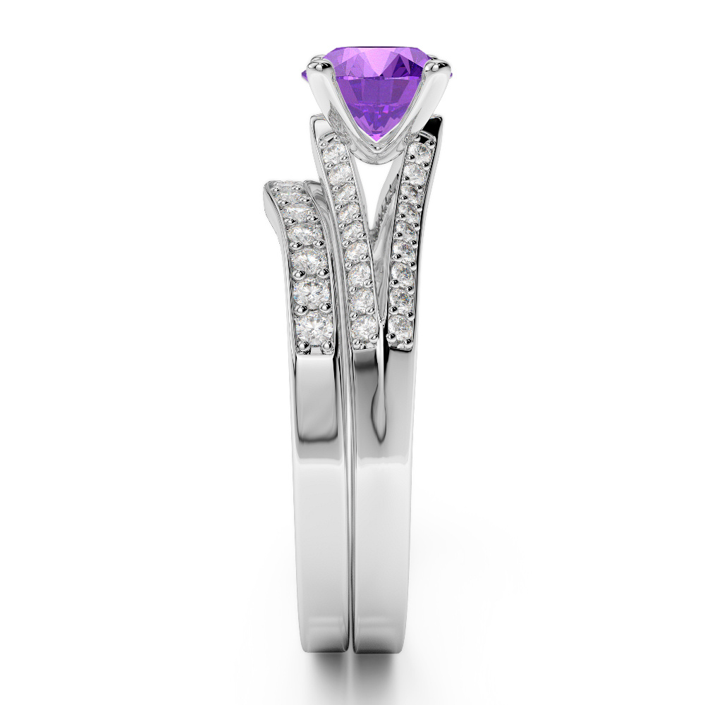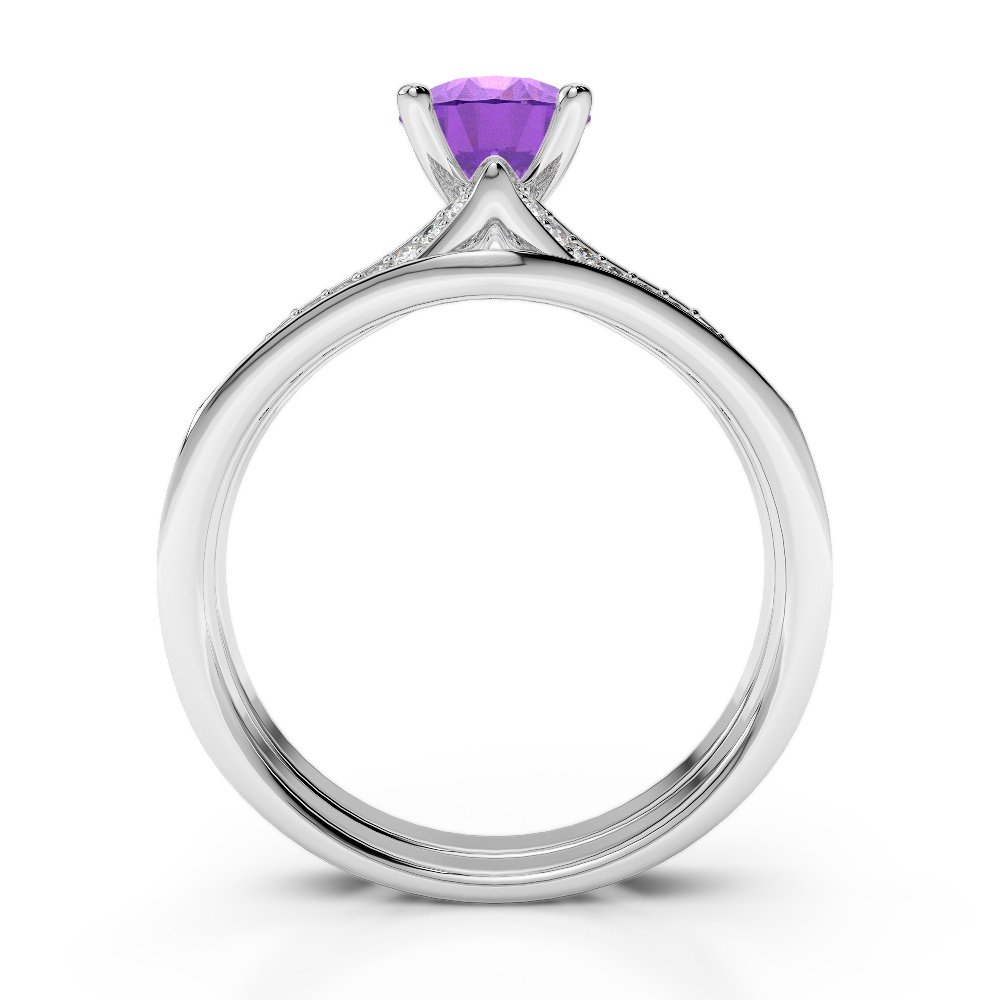 Four Claw Set Amethyst Bridal Set Ring With Diamond 0342