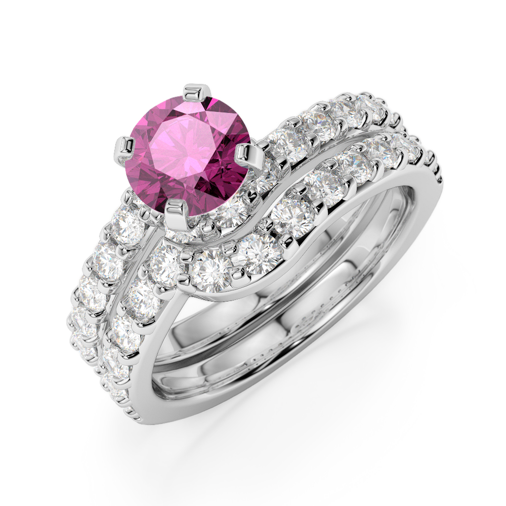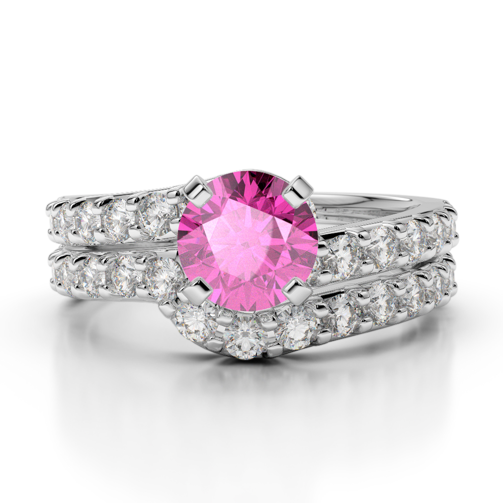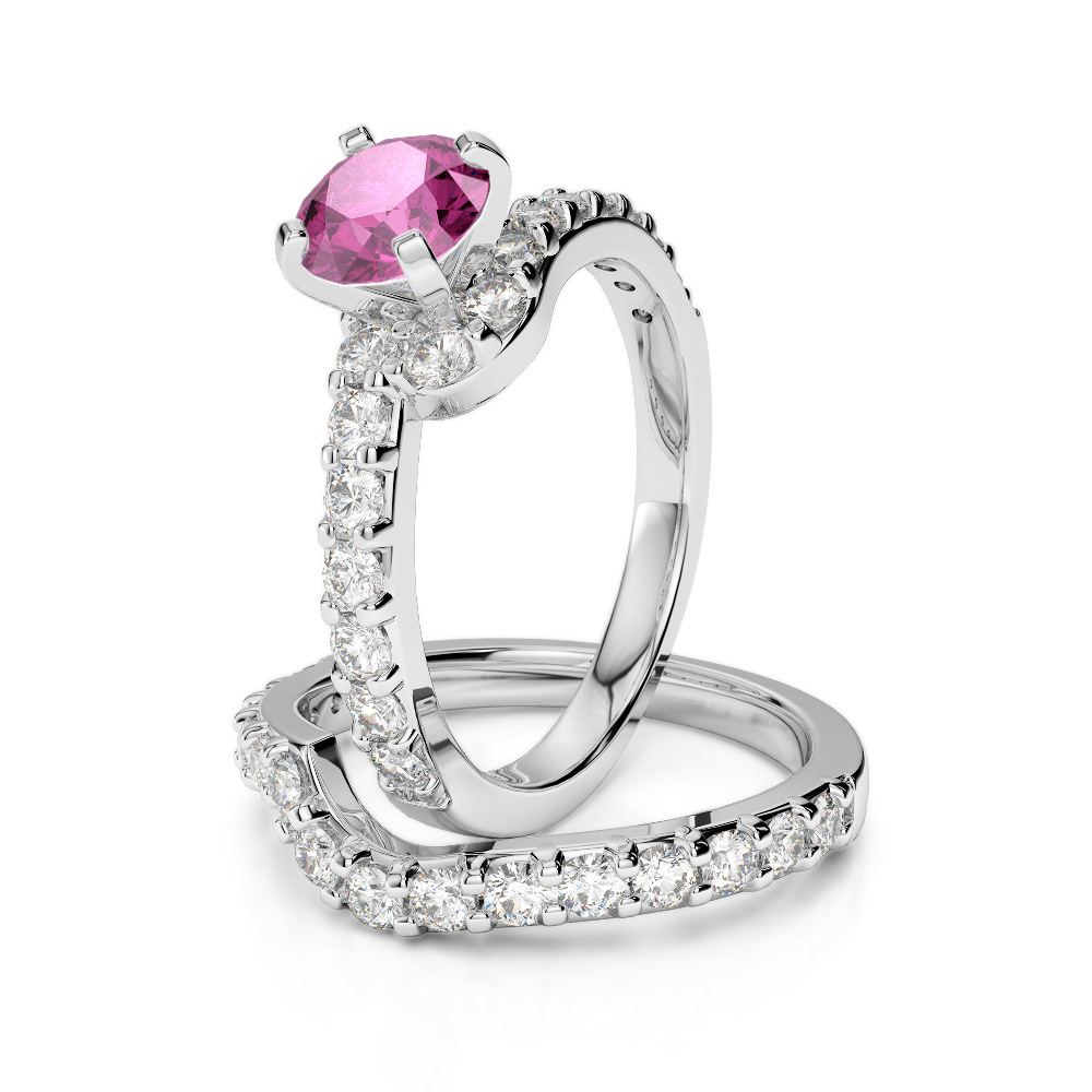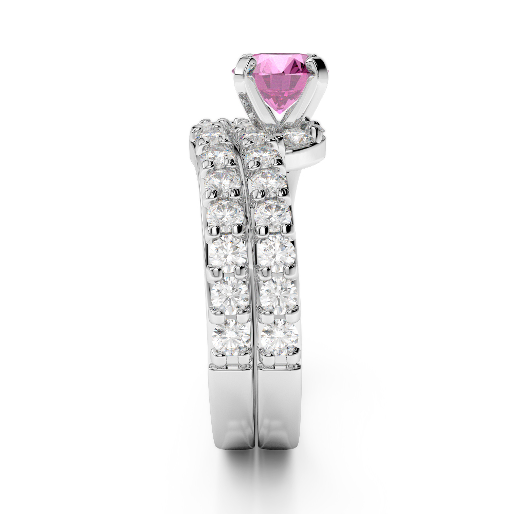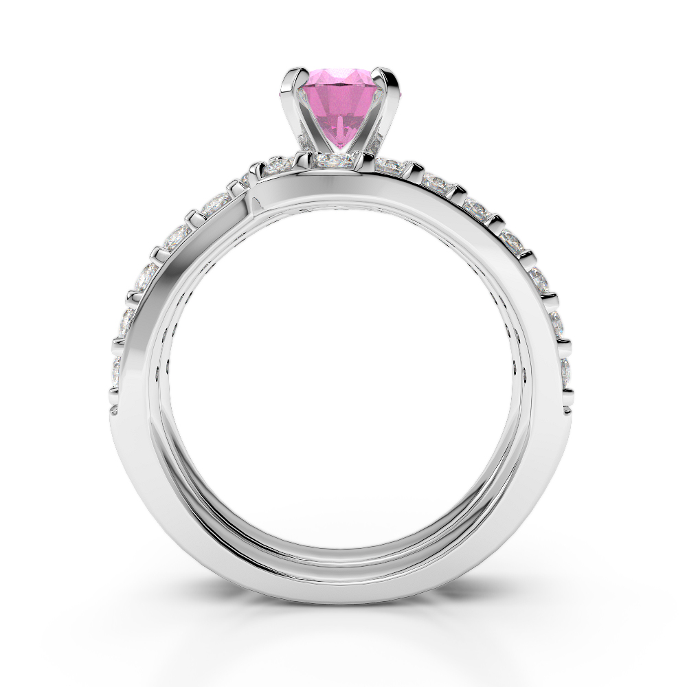 Four Claw Set Pink Sapphire Bridal Set Ring With Diamond 0325