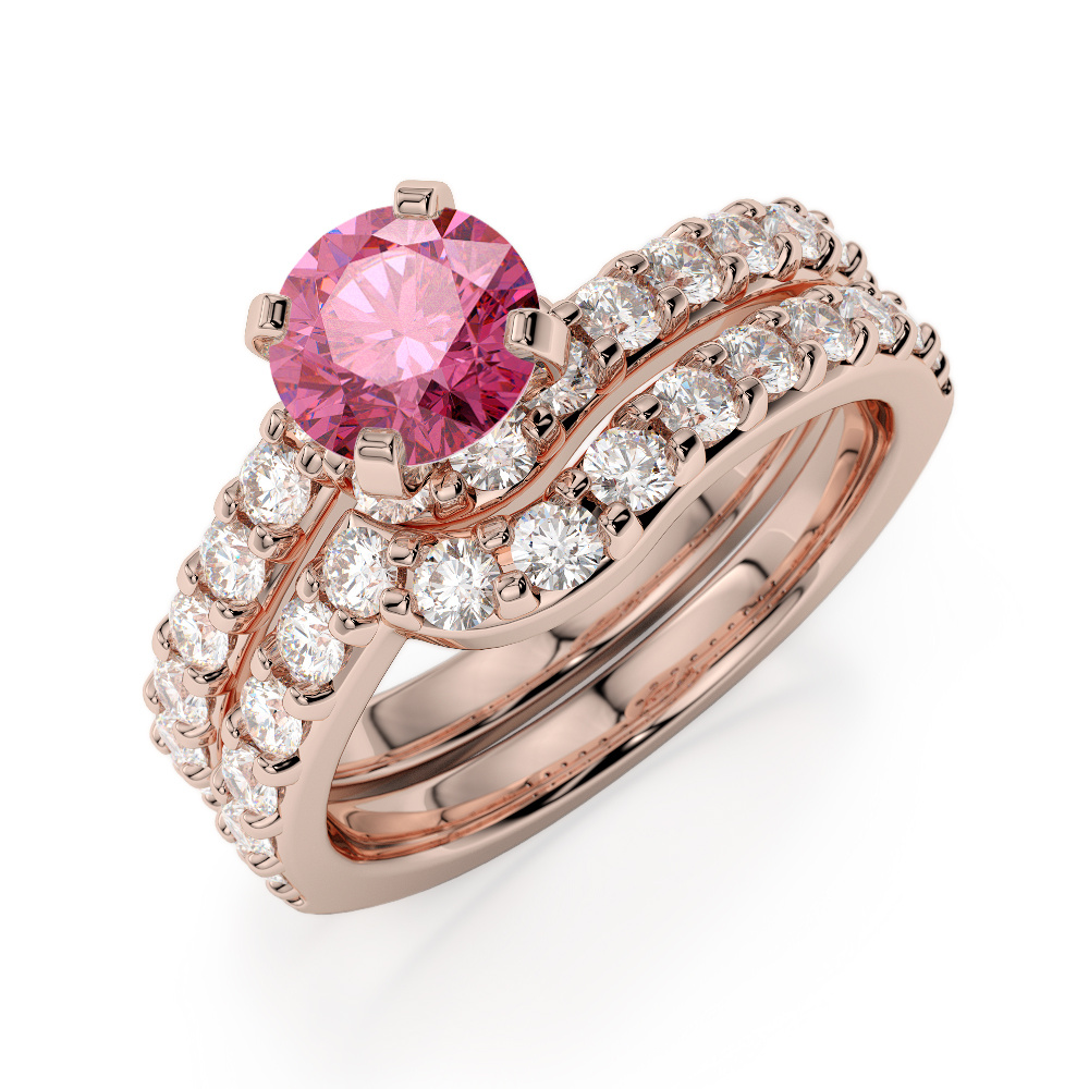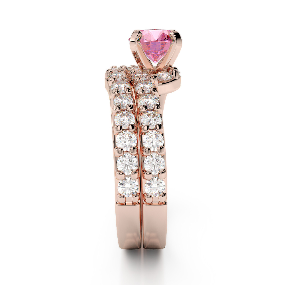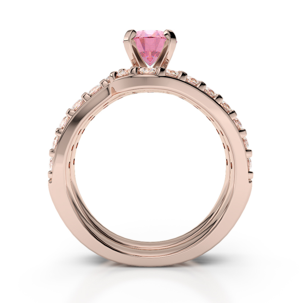 Four Claw Set Pink Tourmaline Bridal Set Ring With Diamond 0325