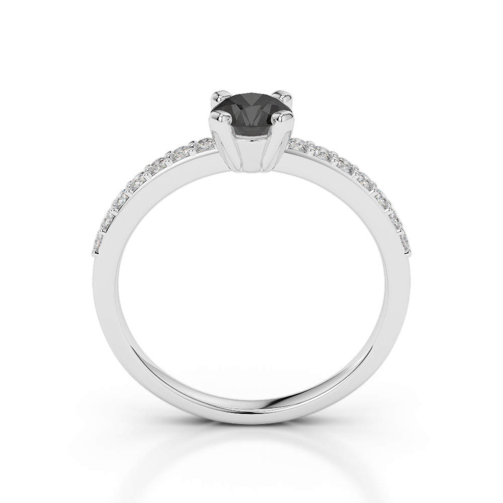 Celebrate your love story with this exquisite Black Diamond And Diamond Engagement Ring, featuring a stunning round brilliant cut diamond that captures the essence of elegance and romance. Renowned for its exceptional sparkle and brilliance, the diamond is meticulously set in a classic prong setting that allows light to flow freely through the stone, maximizing its radiant beauty. The prongs not only highlight the diamond’s brilliance but also provide secure placement. Crafted from the finest materials, this lustrous band symbolizes your commitment and stands as a timeless piece of art to be cherished for generations.