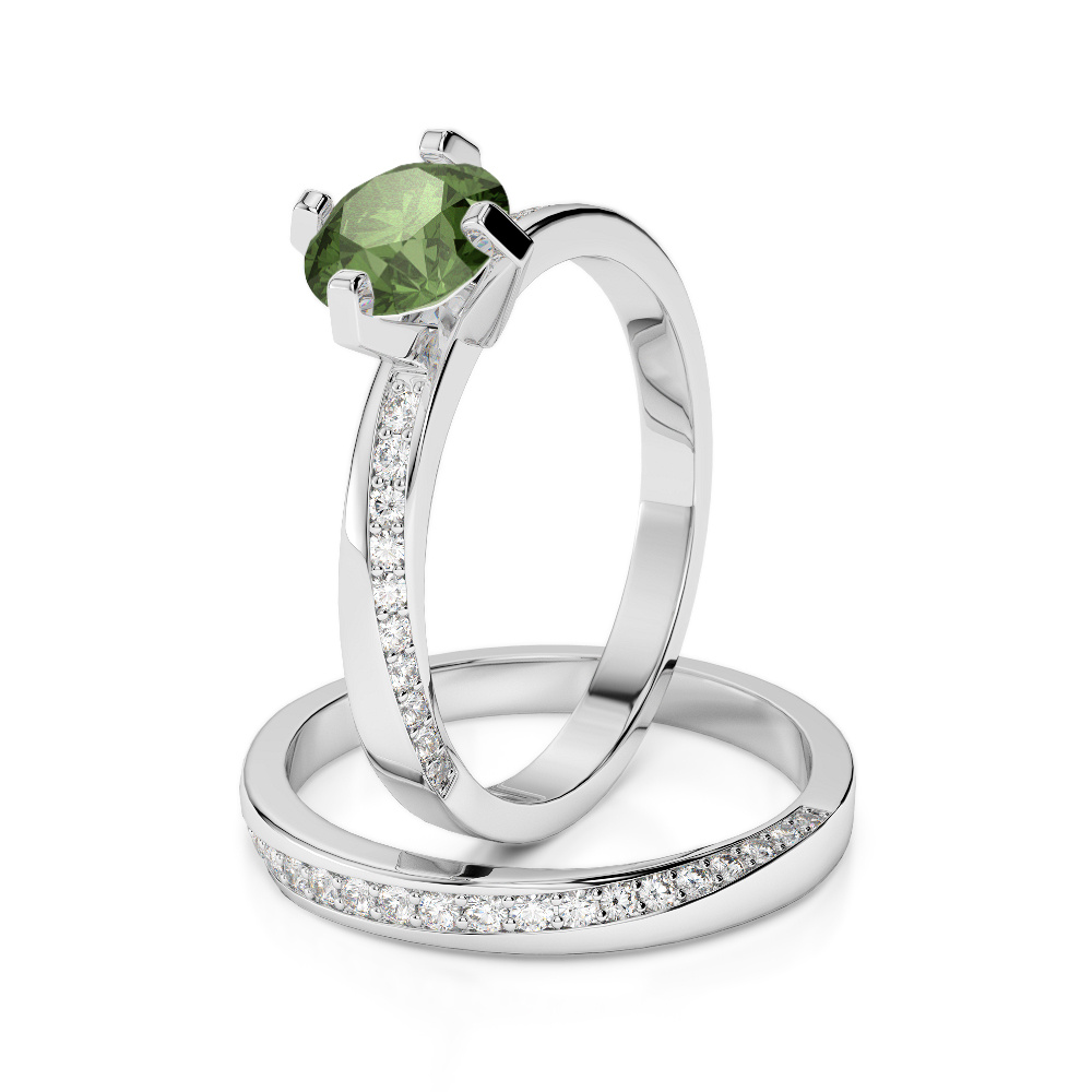 Our Bridal Set Ring with Prong Setting features beautiful stunning green tourmaline wedding rings adorned with diamonds on the sides, symbolizing eternal love and commitment. Crafted with precision and attention to detail, these rings are sure to capture hearts and create lasting memories. Perfect for special occasions or meaningful anniversary, this beautiful choice will sparkle and shine for a lifetime.