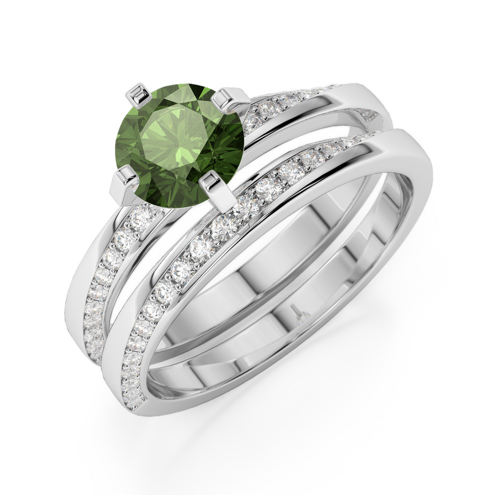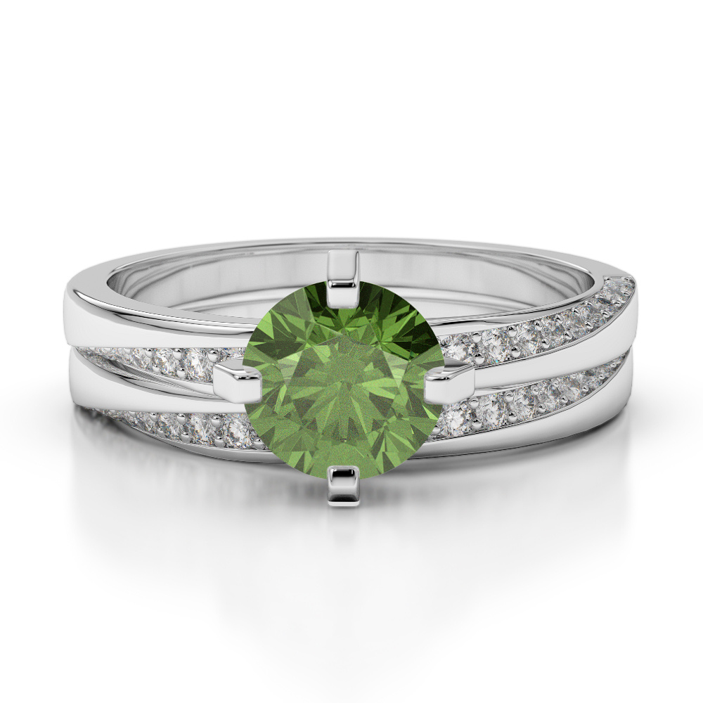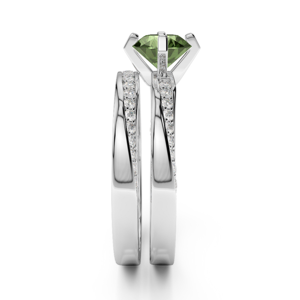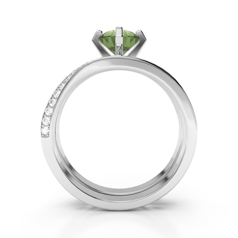 Four Prong Set Green Tourmaline Bridal Set Ring With Diamond 0324