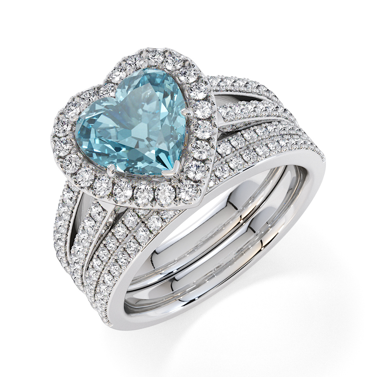 Heart Shape Aquamarine and Diamond Engagement Ring 0795