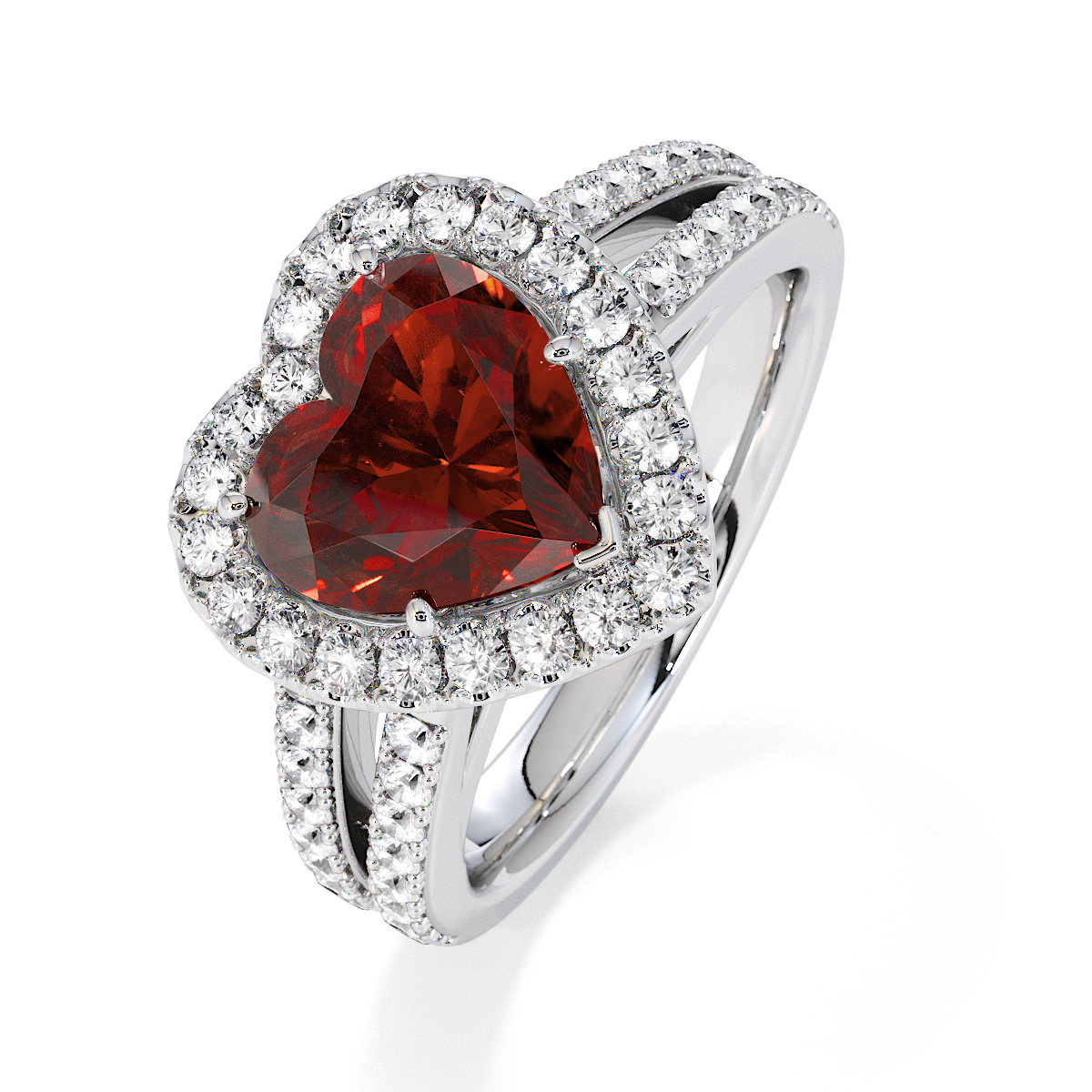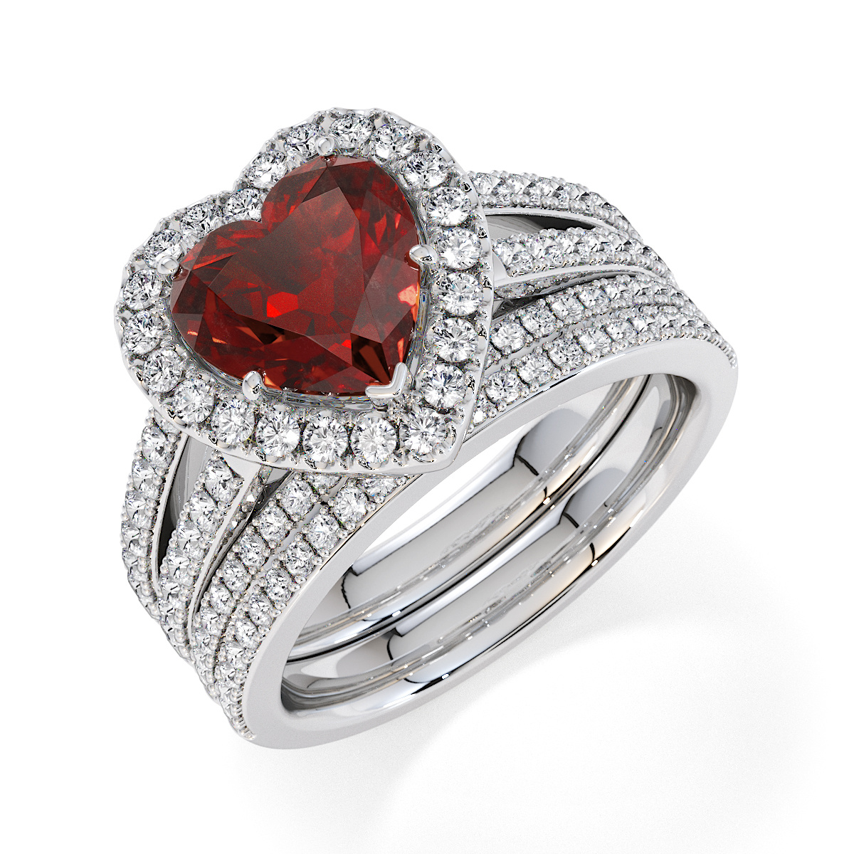 Heart Shape Garnet and Diamond Engagement Ring 0795
