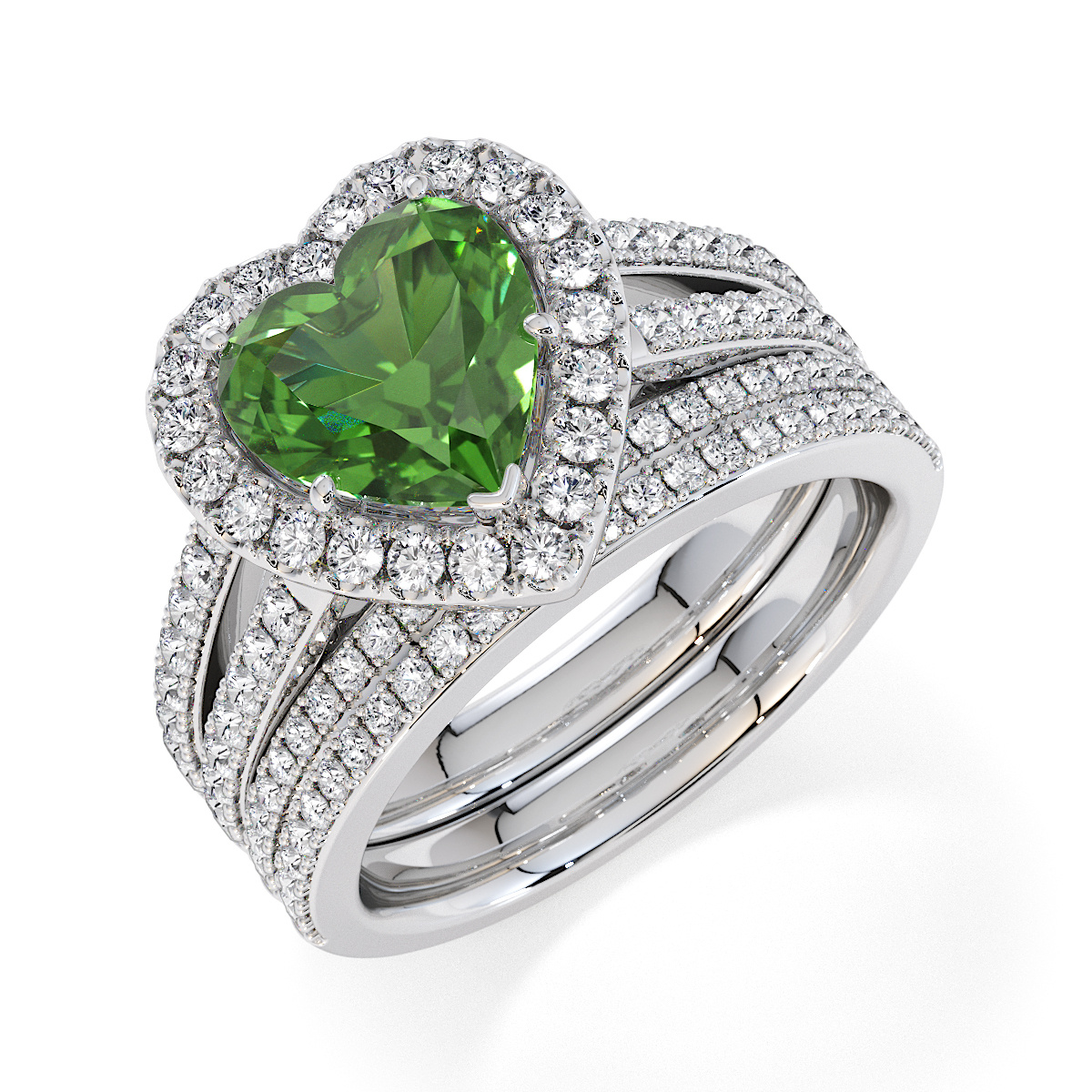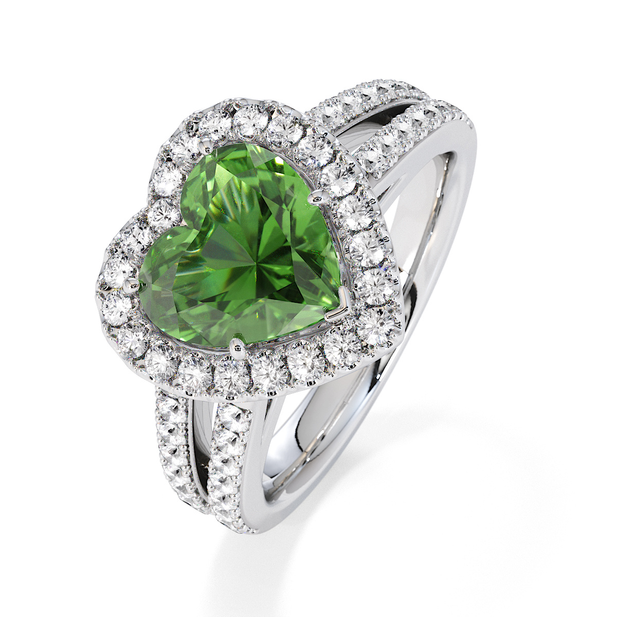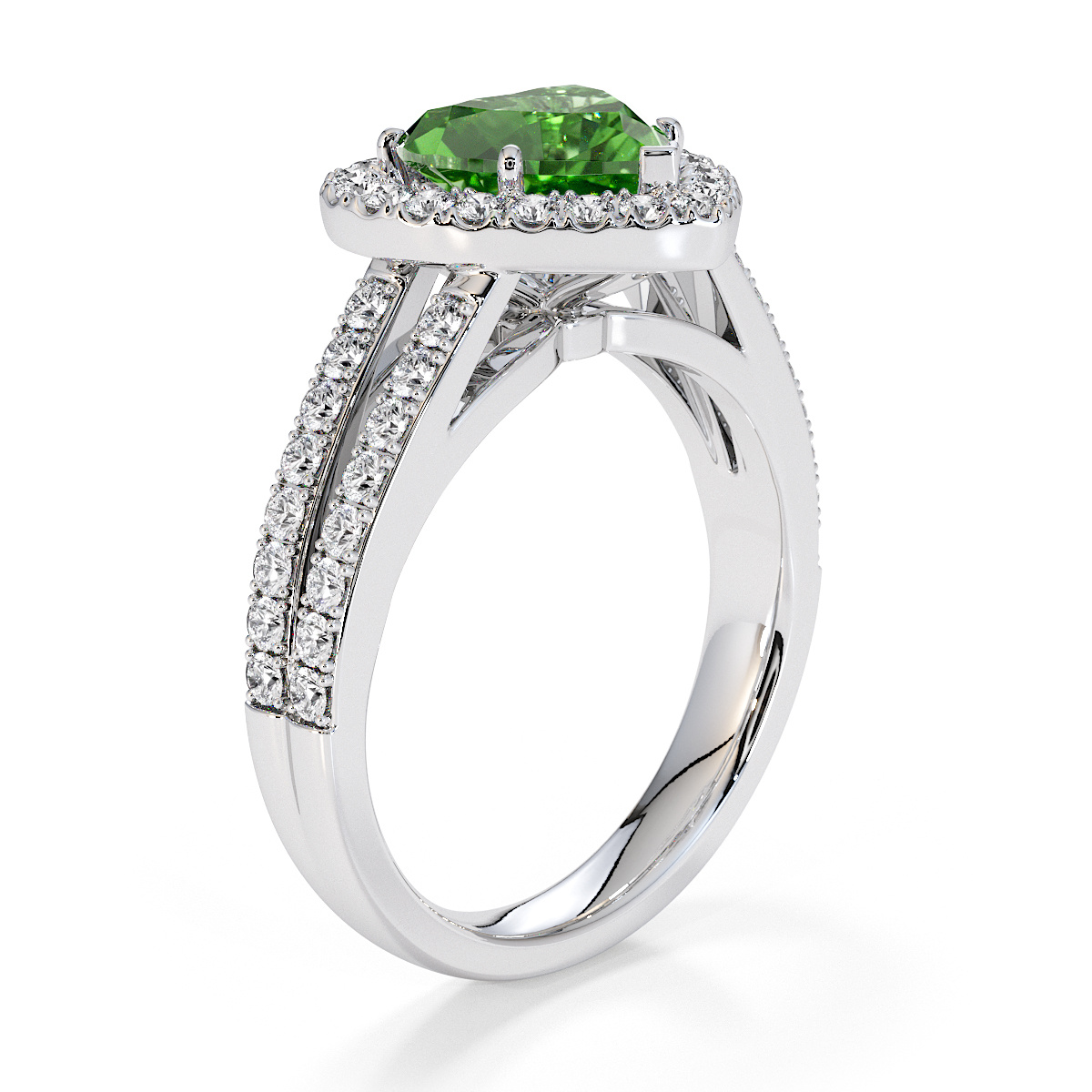 Heart Shape Green Tourmaline and Diamond Engagement Ring 0795