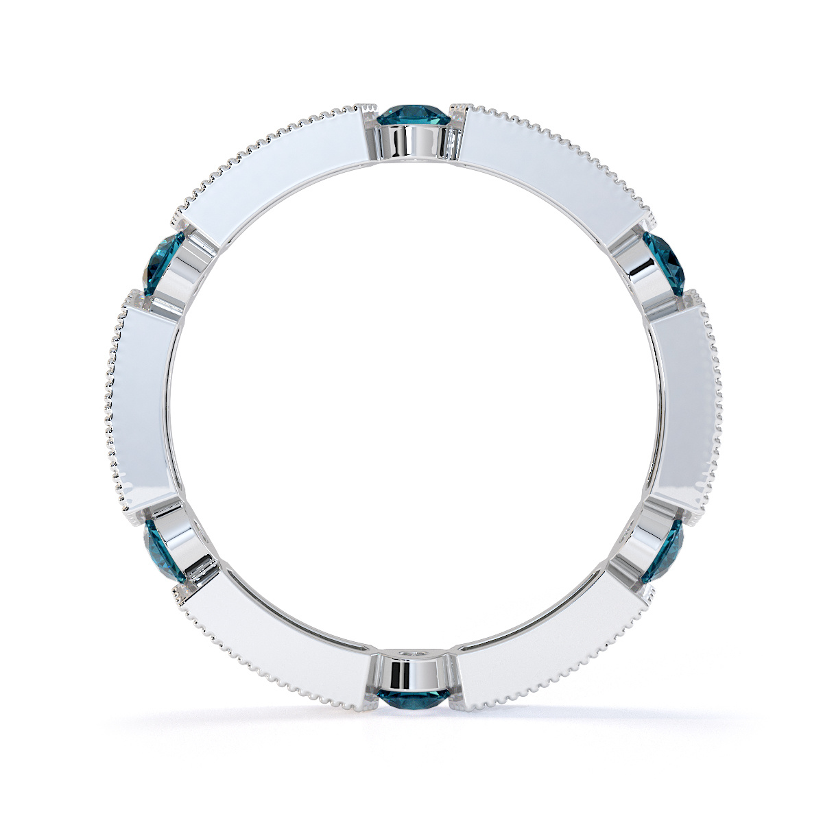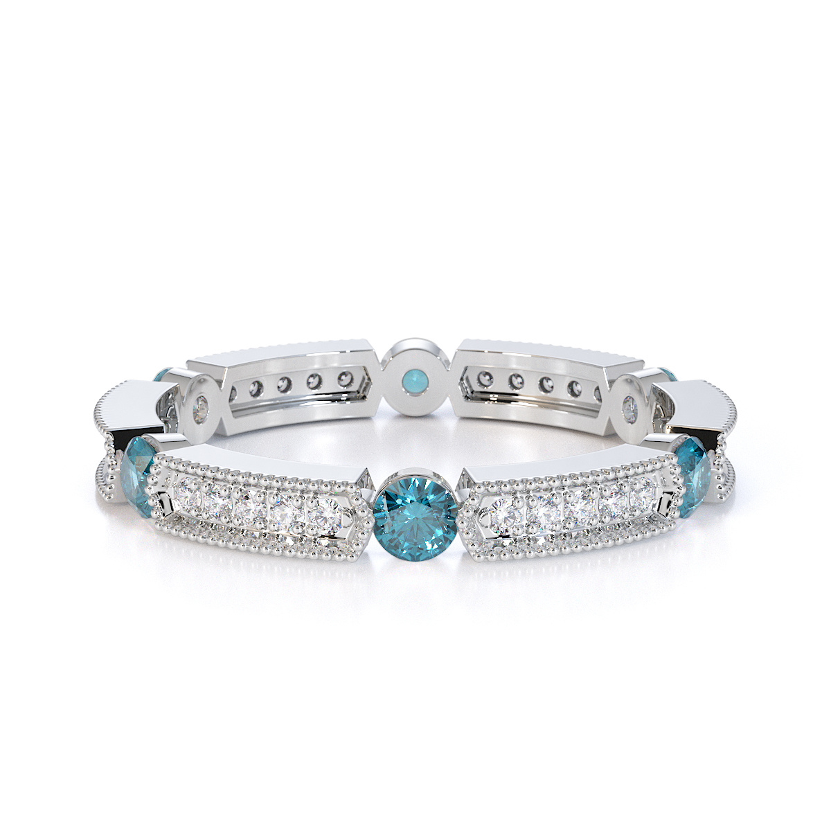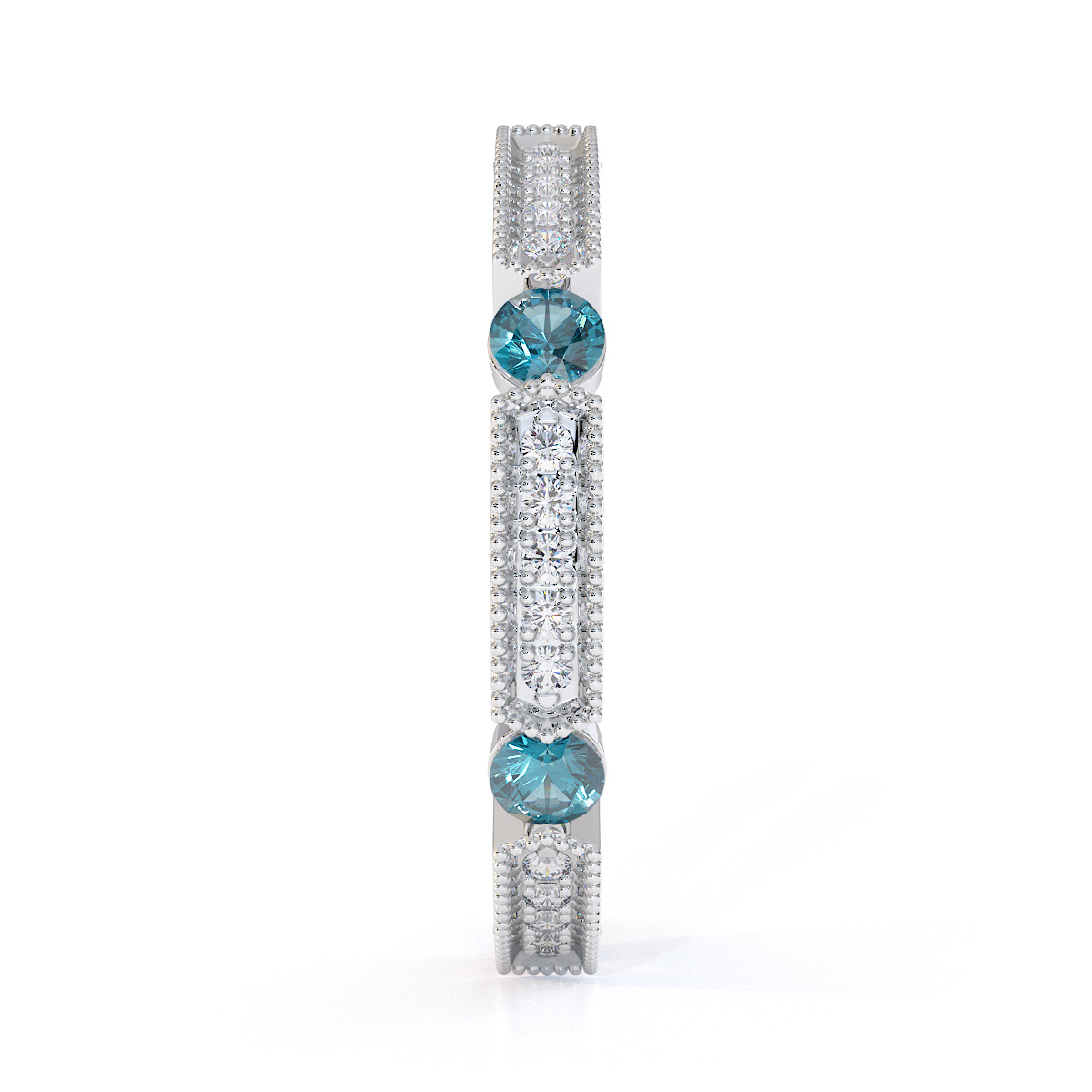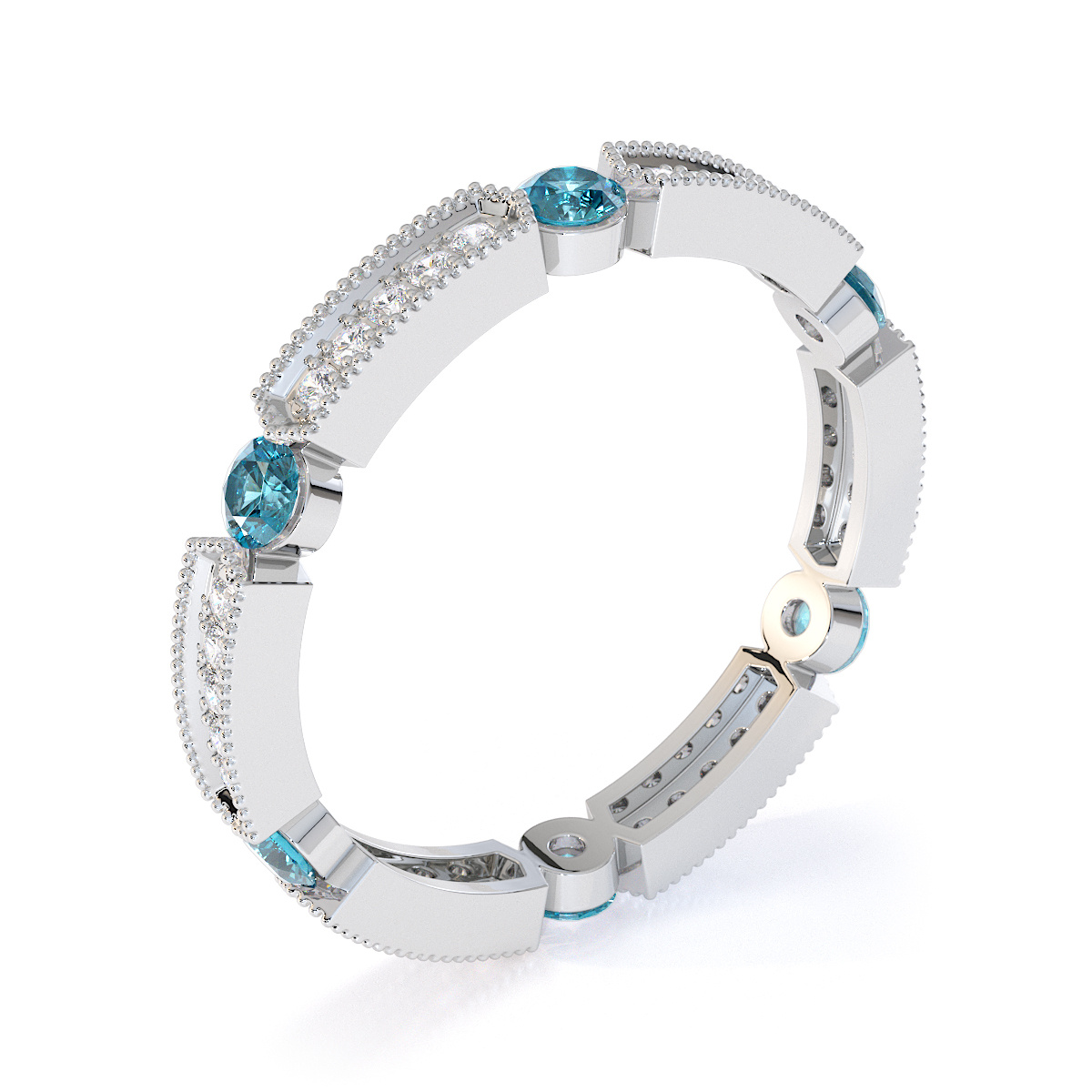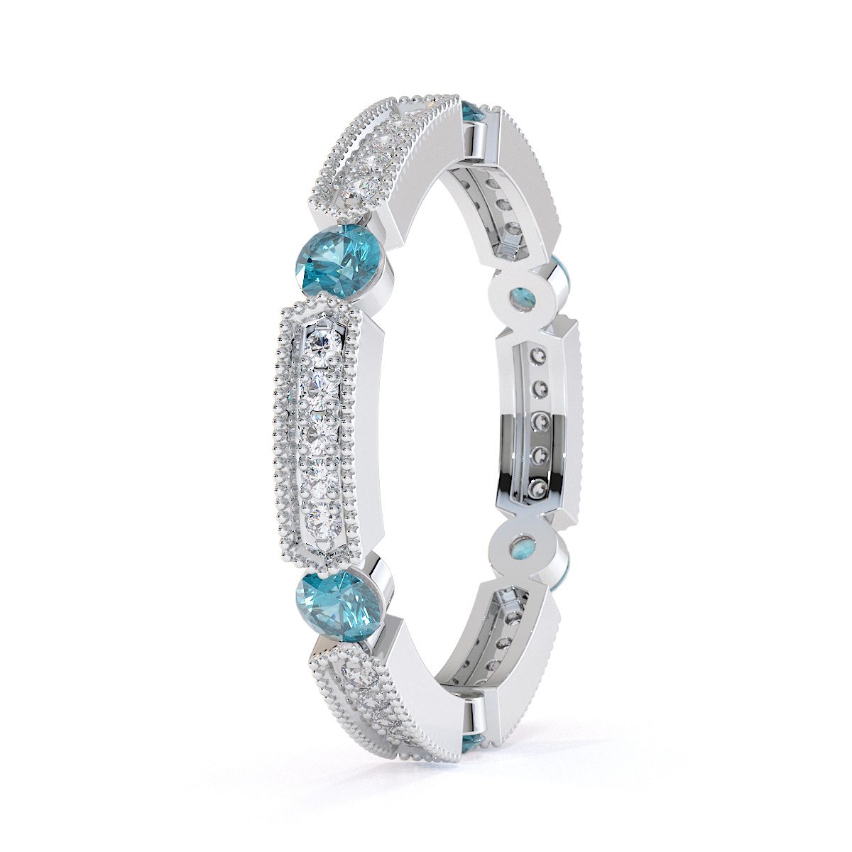Milgrain Prong Set Diamond & Bezel Set Aquamarine Full Eternity Ring 0424