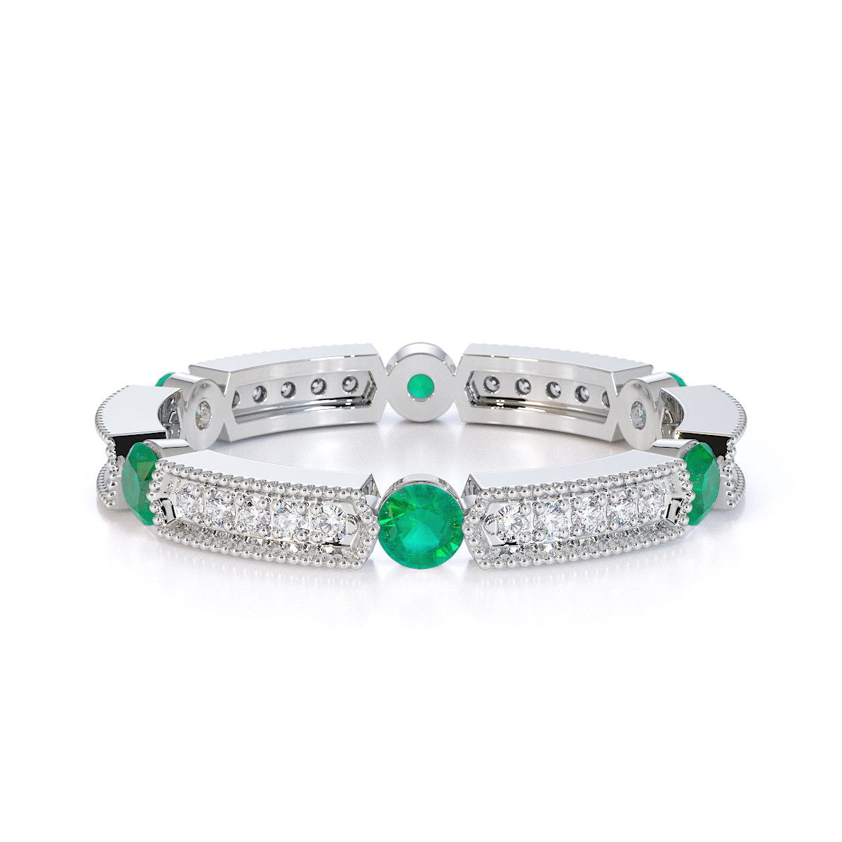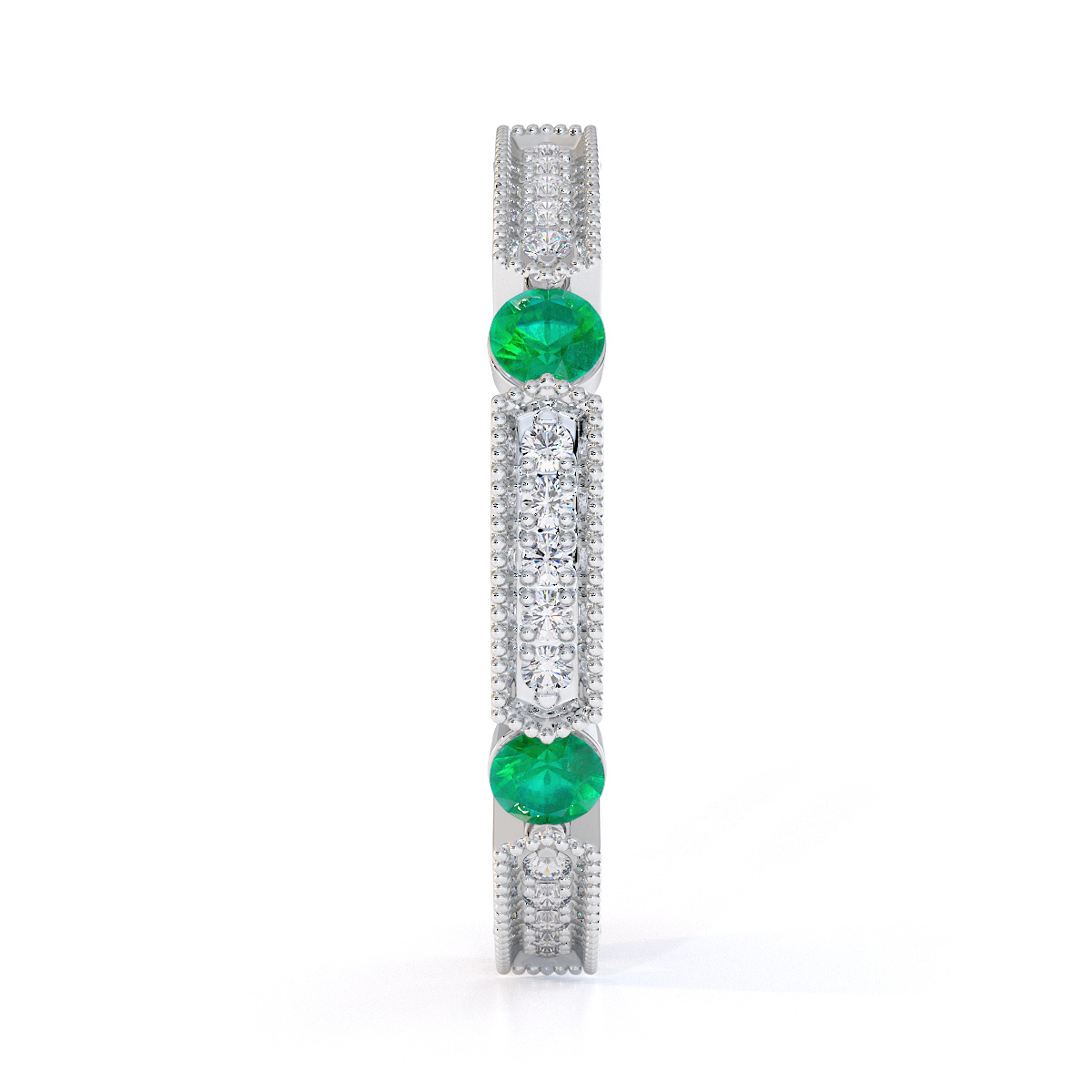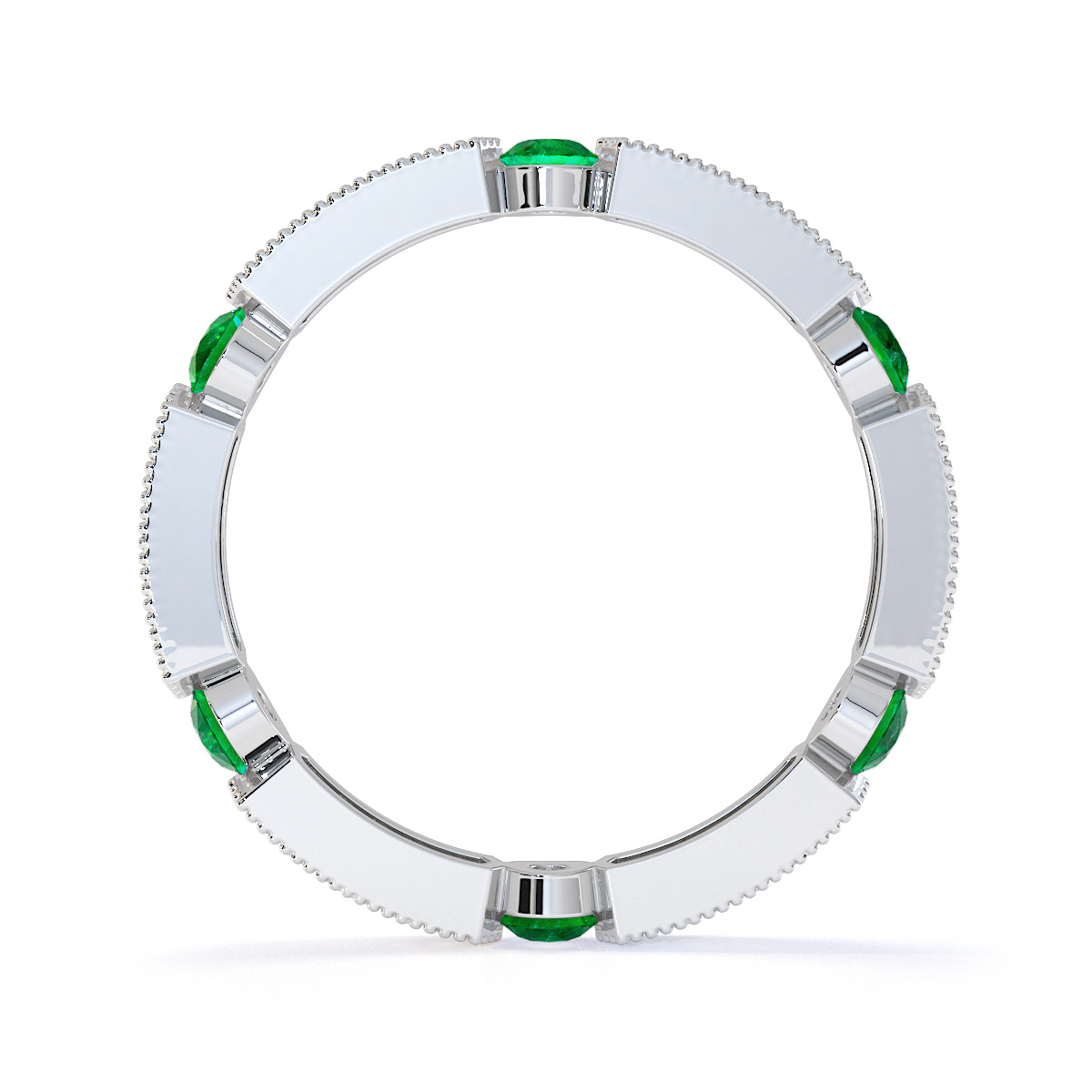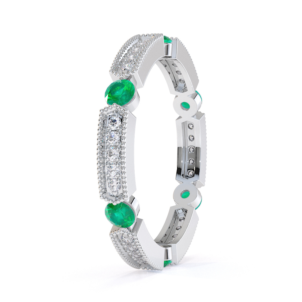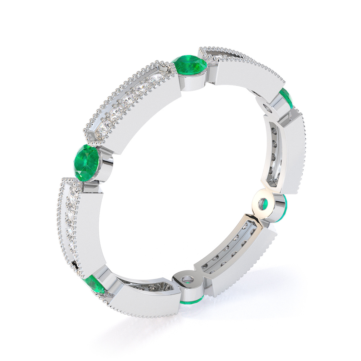 Milgrain Prong Set Diamond & Bezel Set Emerald Full Eternity Ring 0424