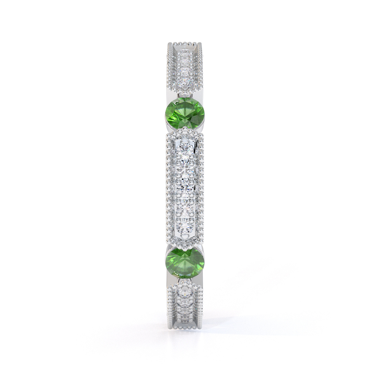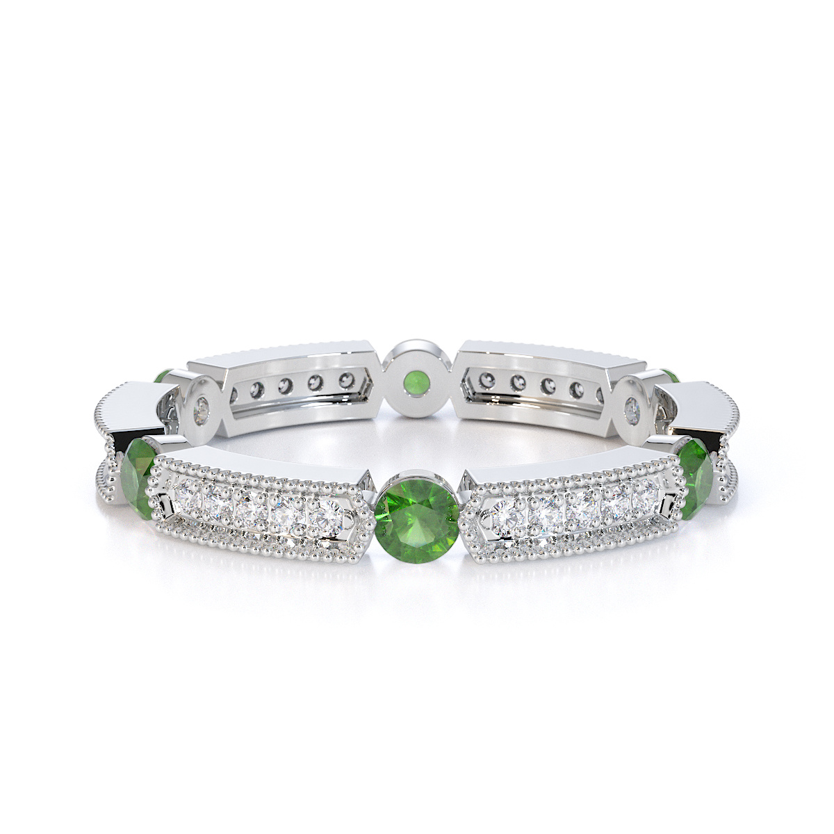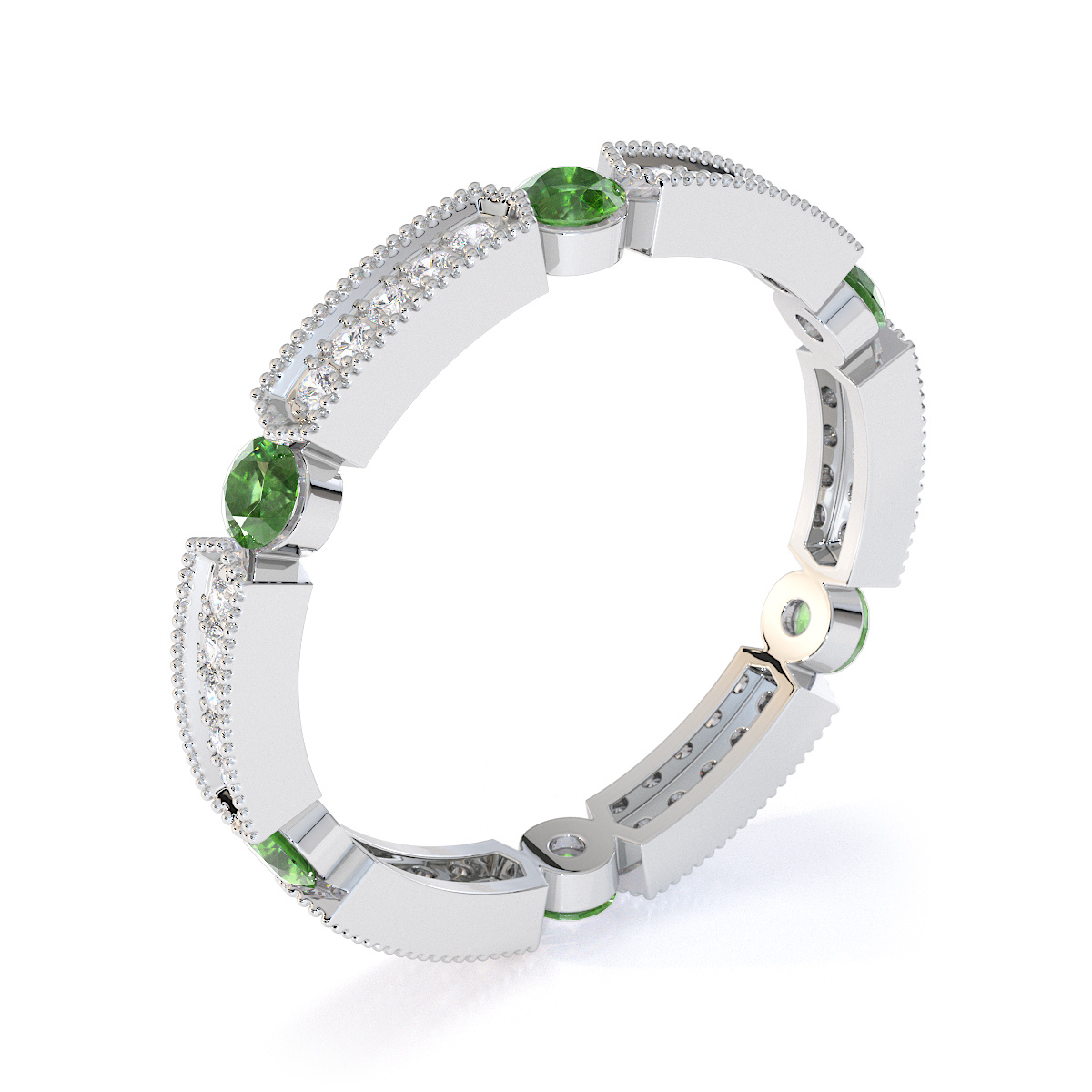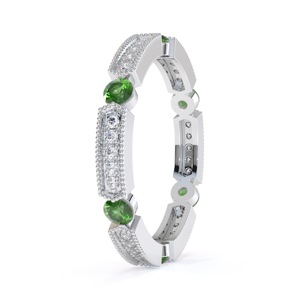 Milgrain Prong Set Diamond & Bezel Set Green Tourmaline Full Eternity Ring 0424
