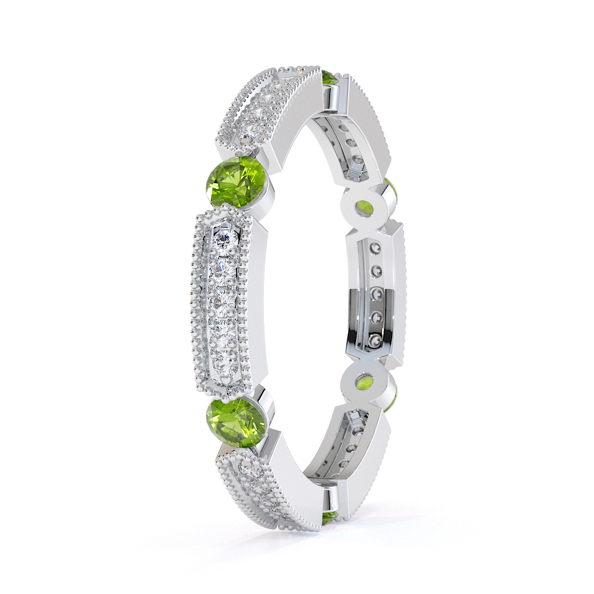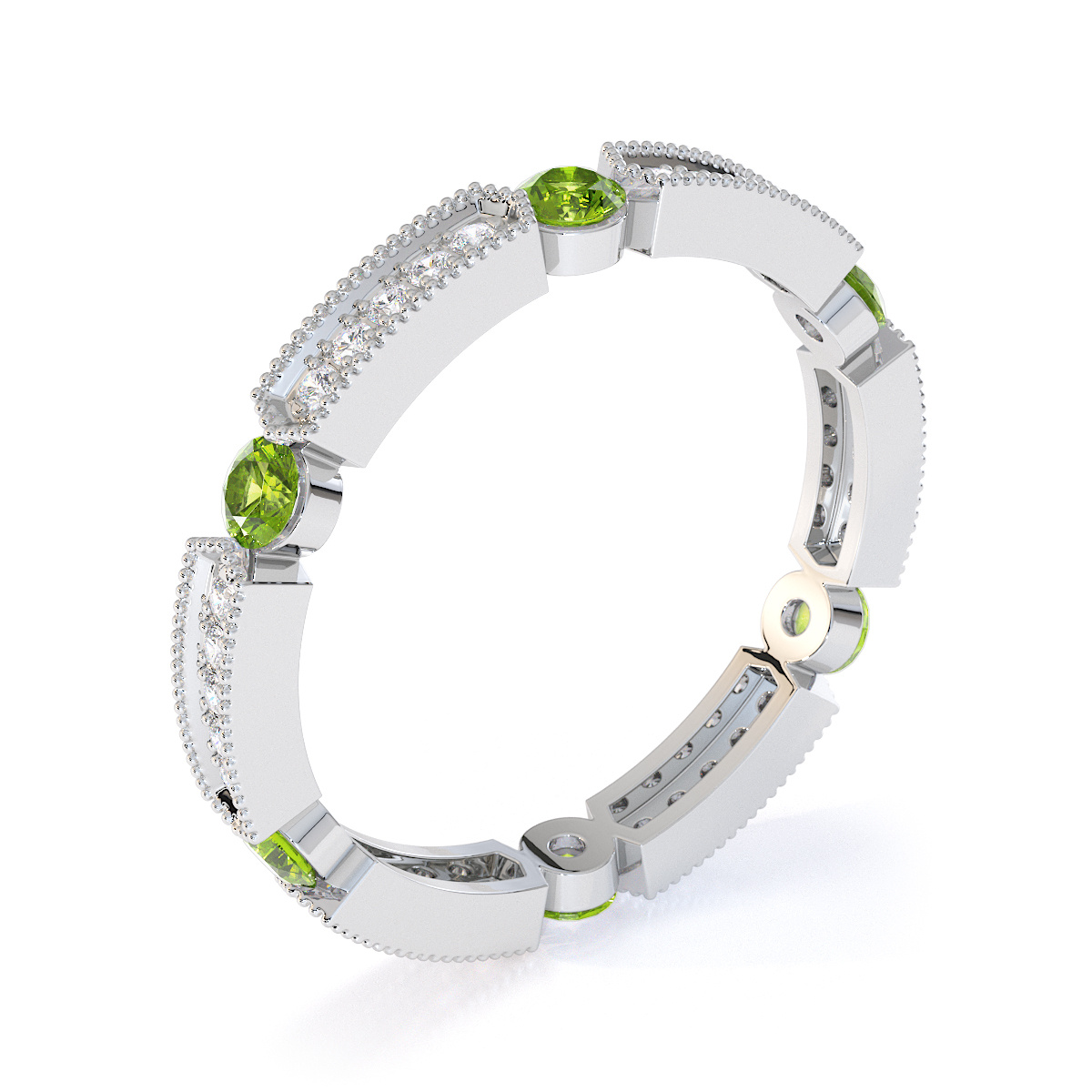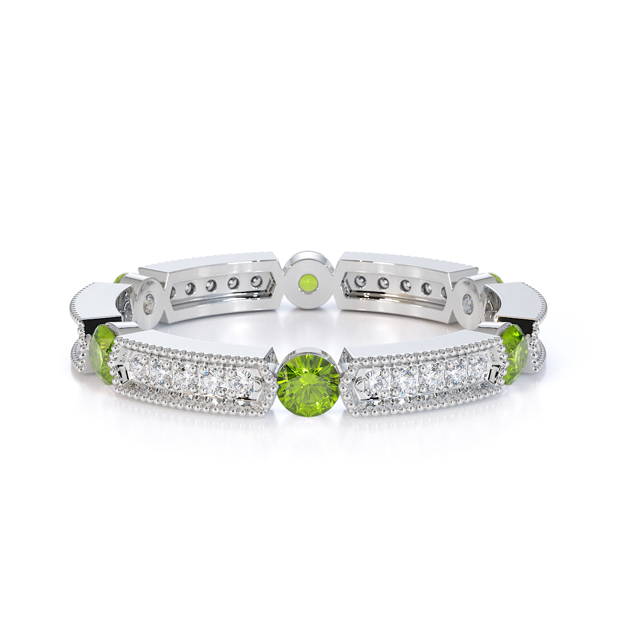 Milgrain Prong Set Diamond & Bezel Set Peridot Full Eternity Ring 0424