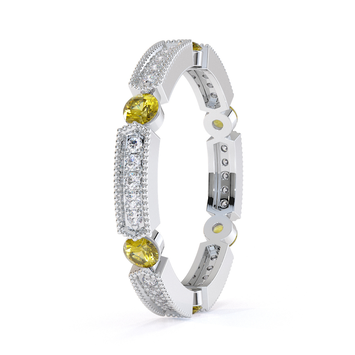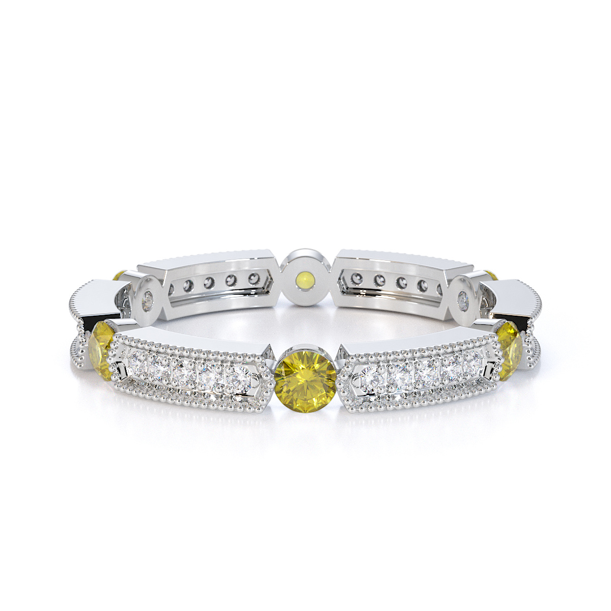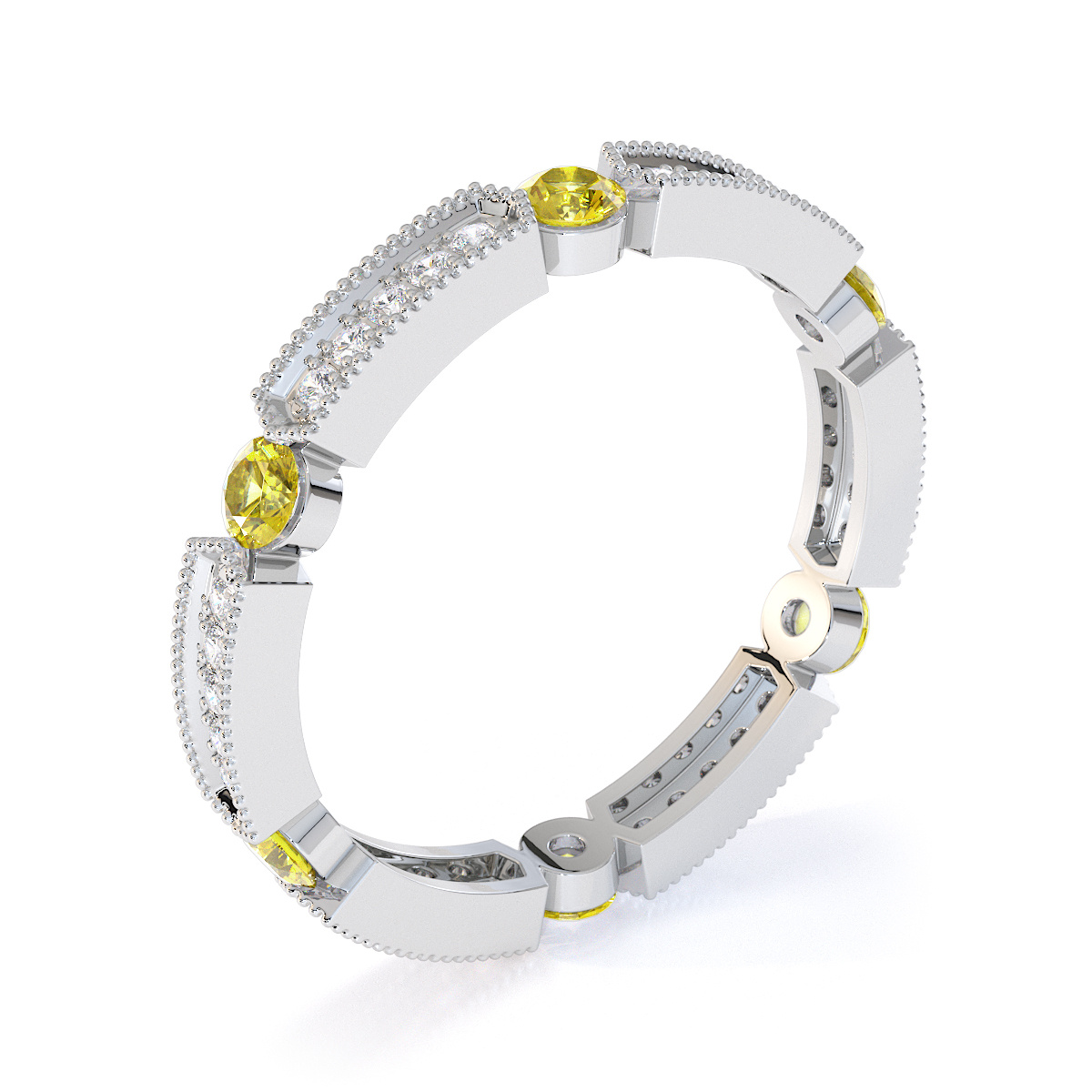 Milgrain Prong Set Diamond & Bezel Set Yellow Sapphire Full Eternity Ring 0424