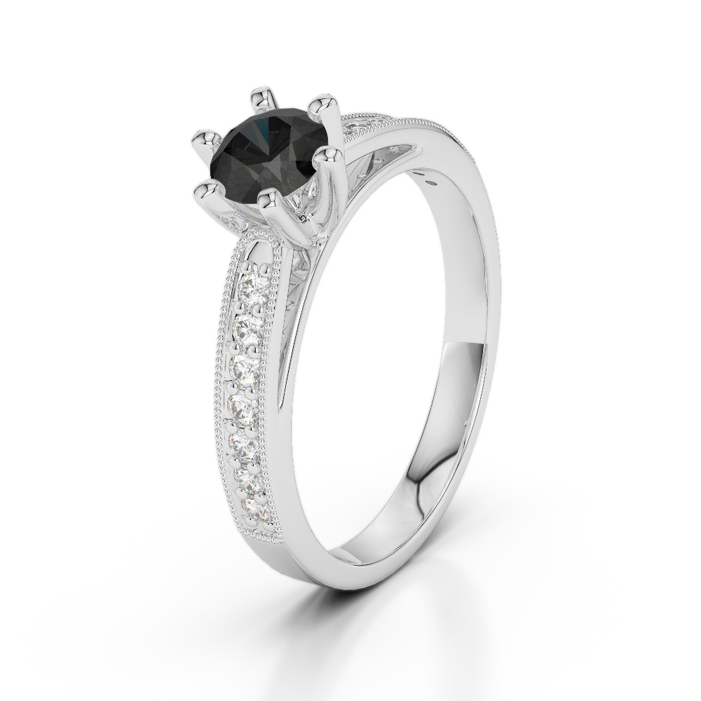 Elevate your love story with this exquisite Black Diamond And Diamond Engagement Ring, featuring a stunning round brilliant cut diamond that captures the essence of timeless elegance. Renowned for its exceptional sparkle and fire, the diamond is meticulously secured in a classic prong setting, which allows maximum light to pass through the stone, enhancing its brilliance from every angle. The prong setting also provides lasting security while showcasing the diamond’s full beauty. Set on a lustrous band crafted from high-quality materials, this ring offers a secure and comfortable fit. More than just a symbol of commitment, it is a breathtaking piece of jewelry to be cherished for generations.