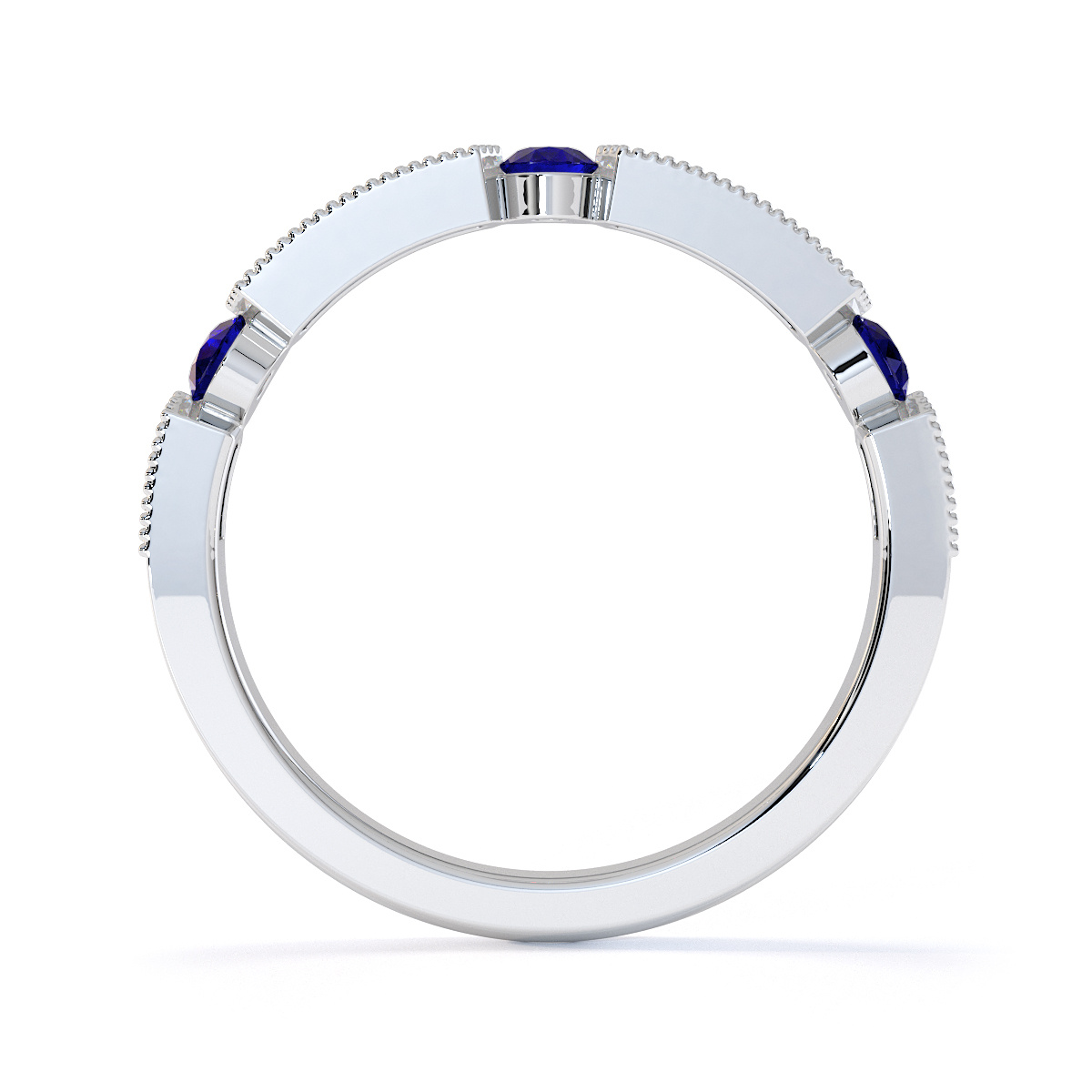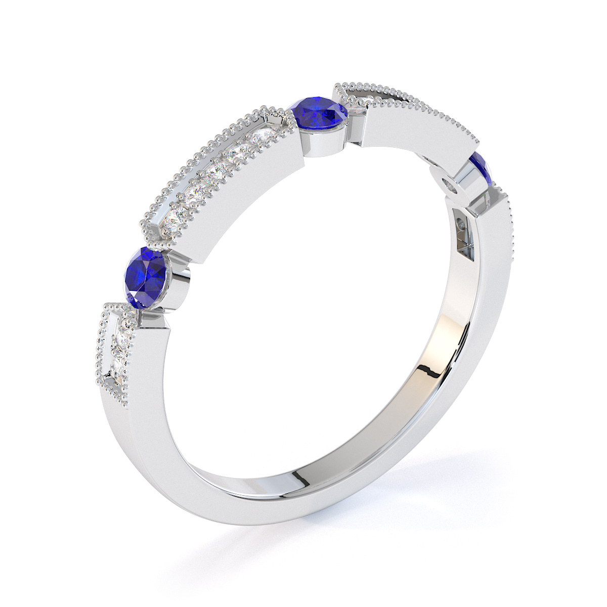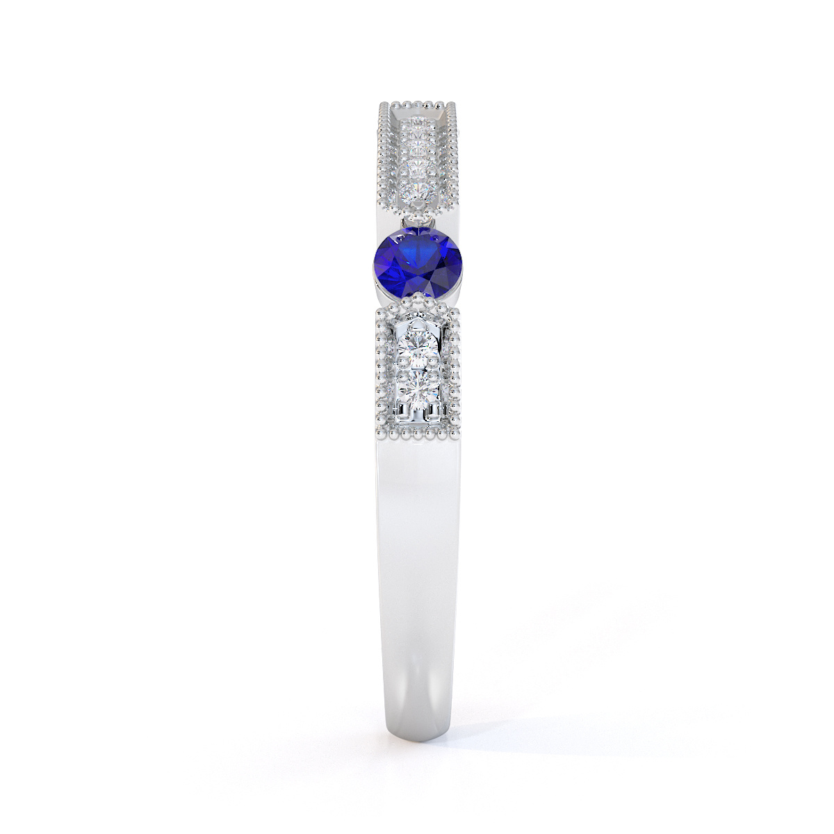 Milgrain Round Cut Diamond and Blue Sapphire Half Eternity Ring 0425
