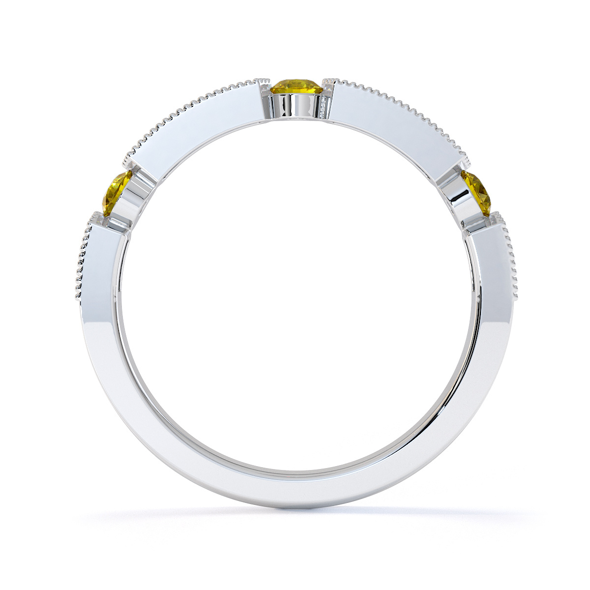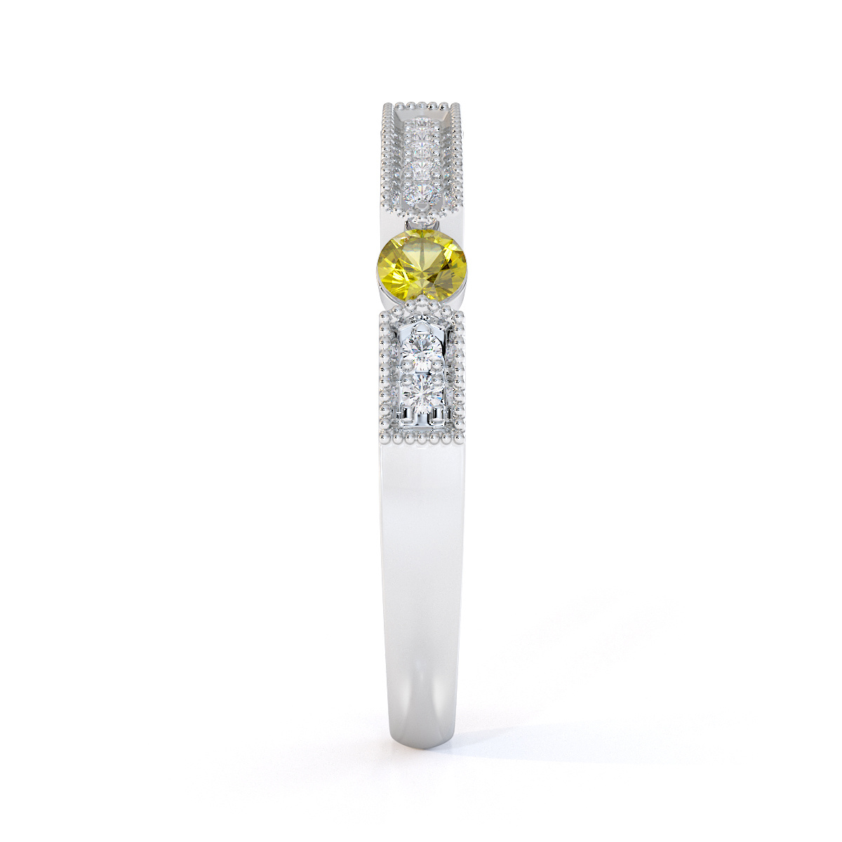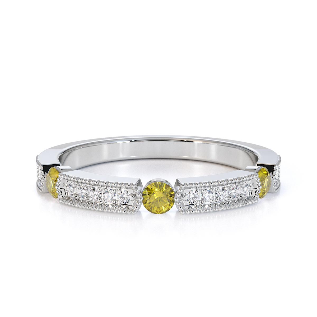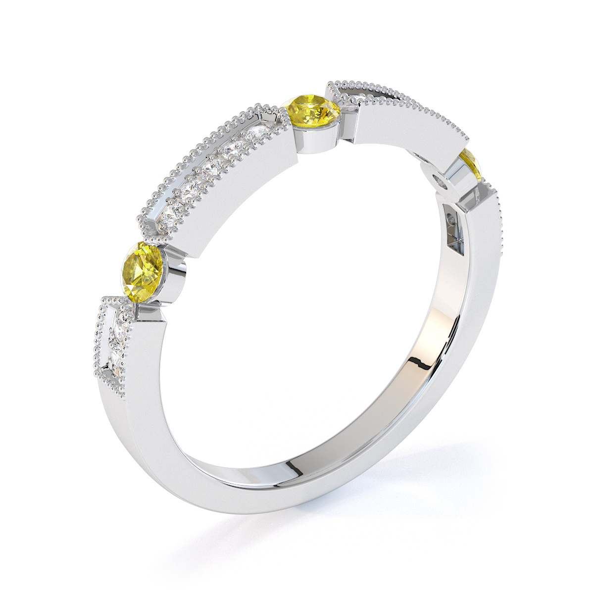 Milgrain Round Cut Diamond and Yellow Sapphire Half Eternity Ring 0425