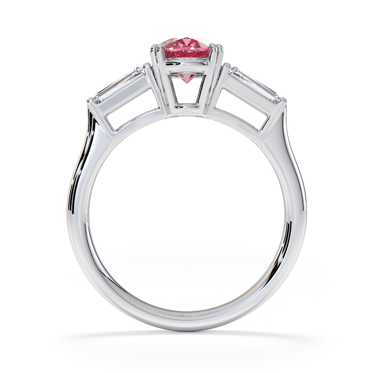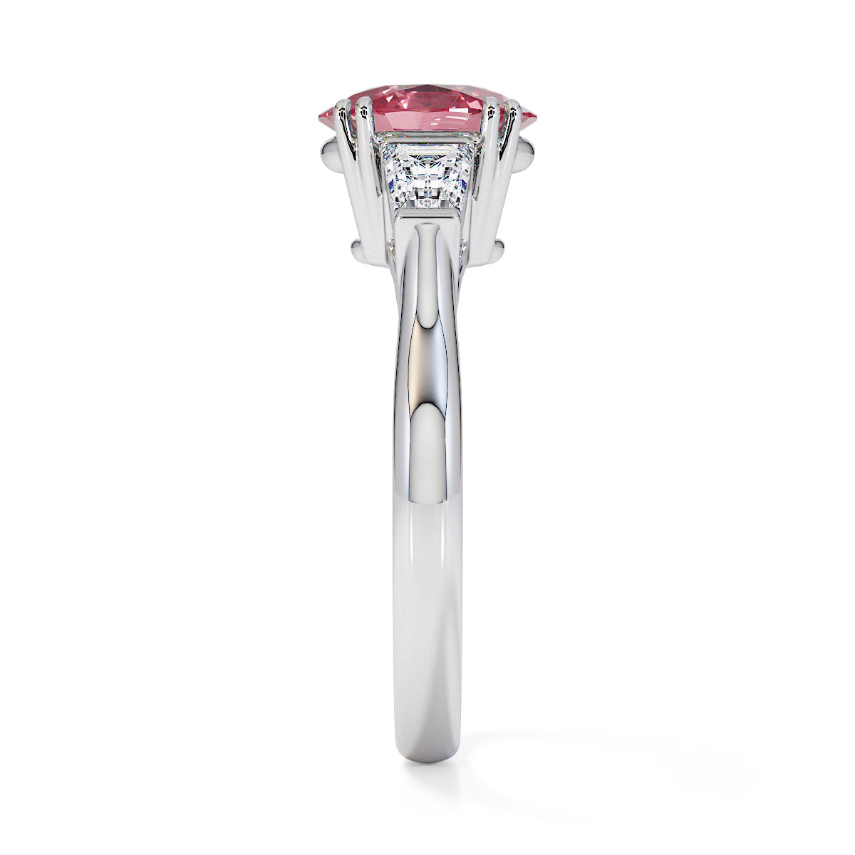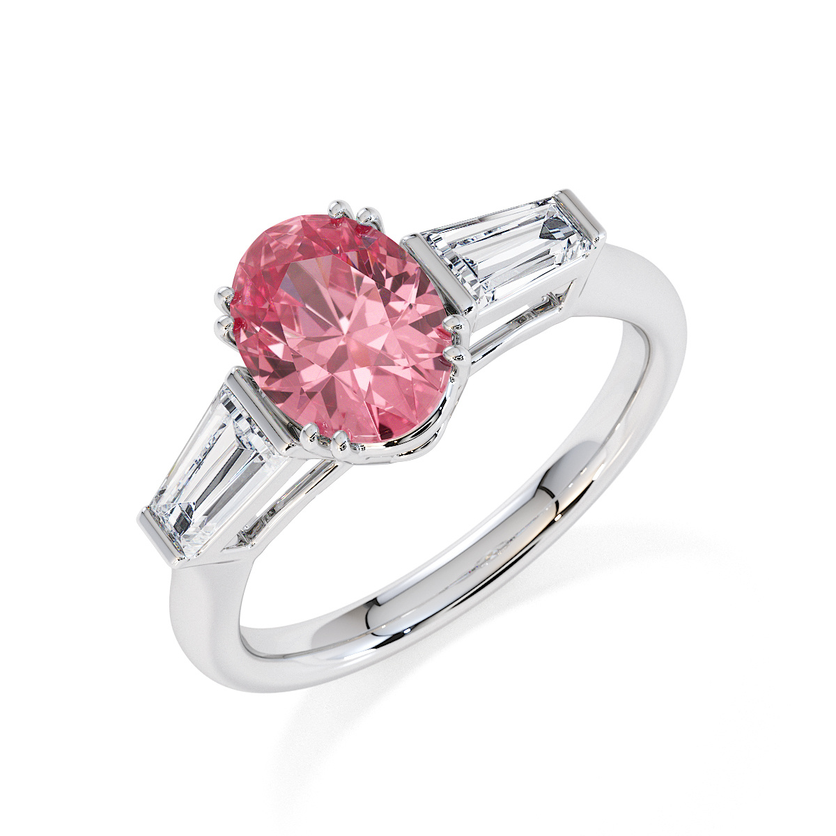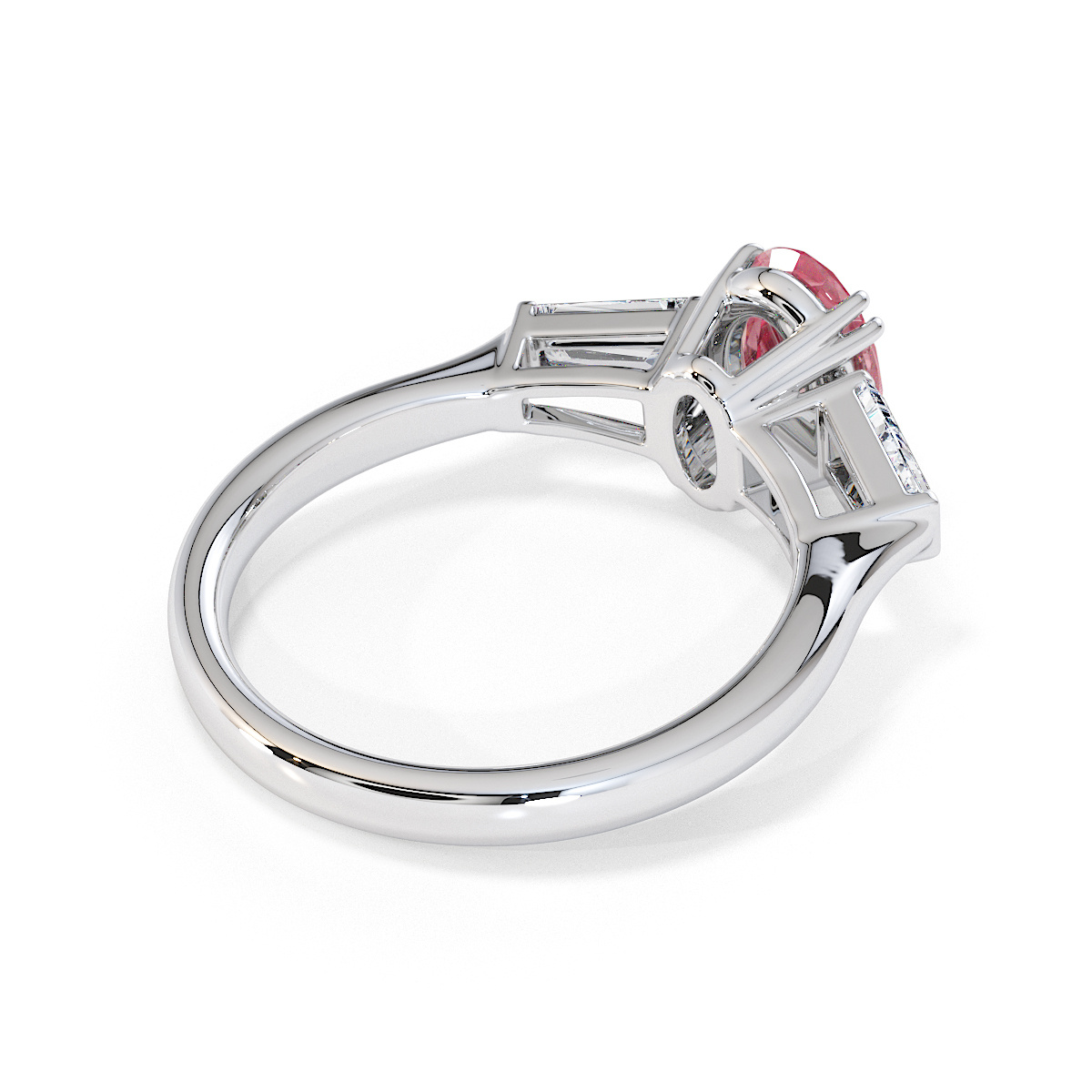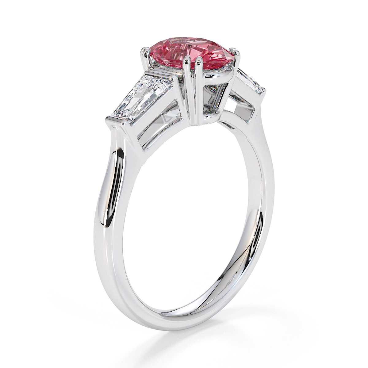Oval Shape Pink Tourmaline and Tapered Baguette Diamond Ring 0783