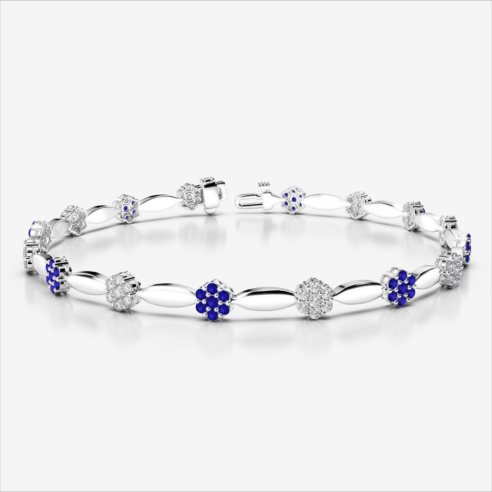 Embrace the extraordinary with our Pave Set Blue Sapphire and diamond bracelet, designed for added brilliance. Exquisitely crafted, each gemstone reflects a story of beauty and precision. The bracelet’s timeless style makes it suitable for all seasons and celebrations. Whether worn solo or stacked, it adds an air of refined luxury to your collection—and your moments.