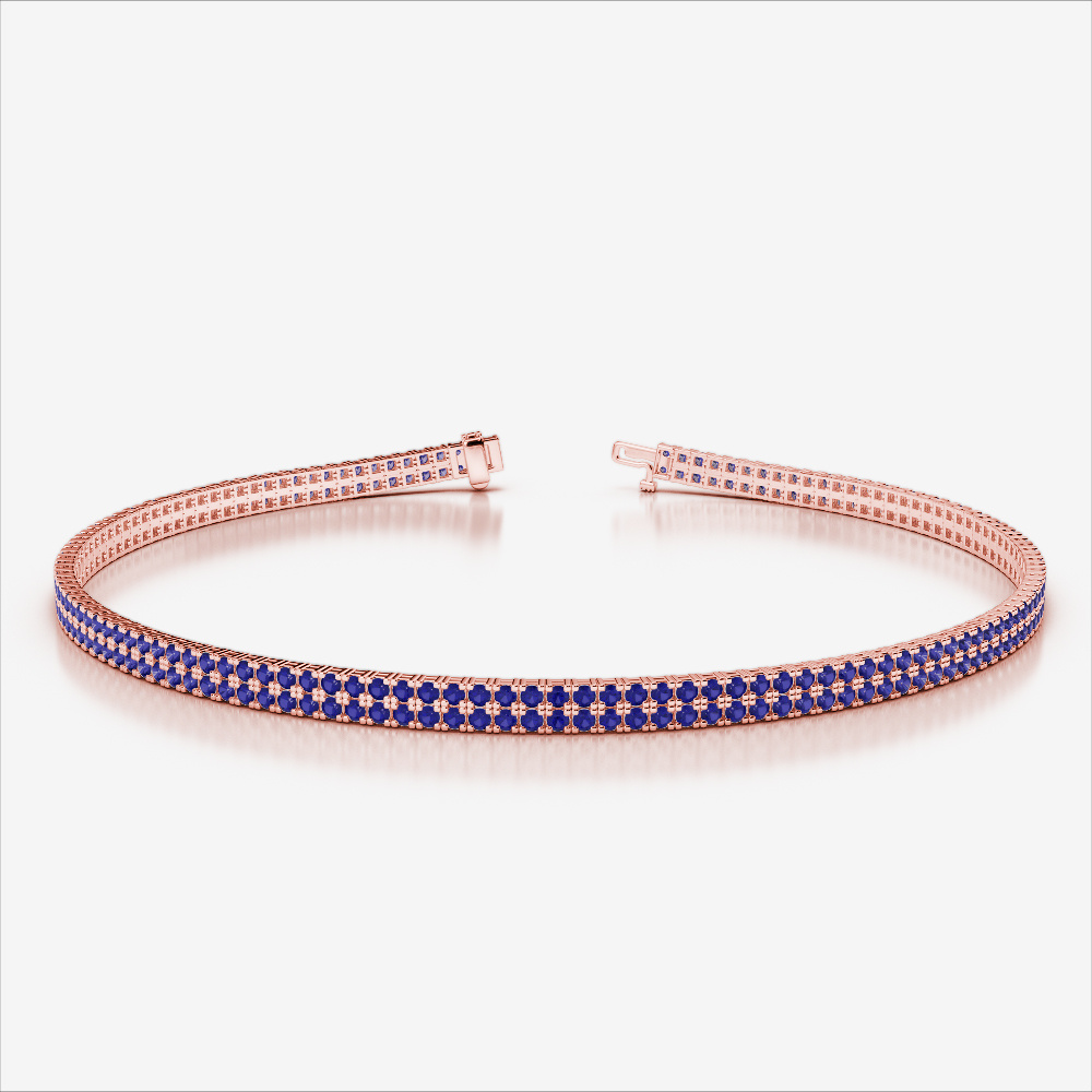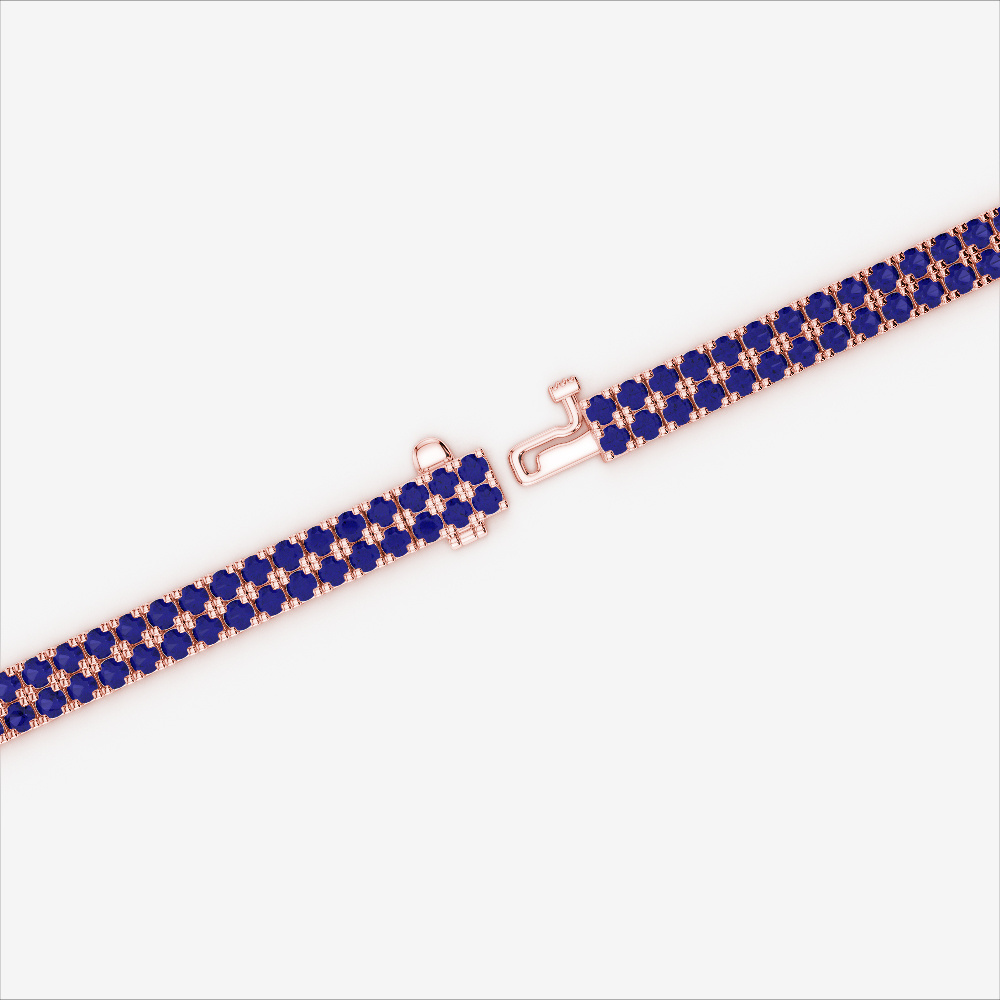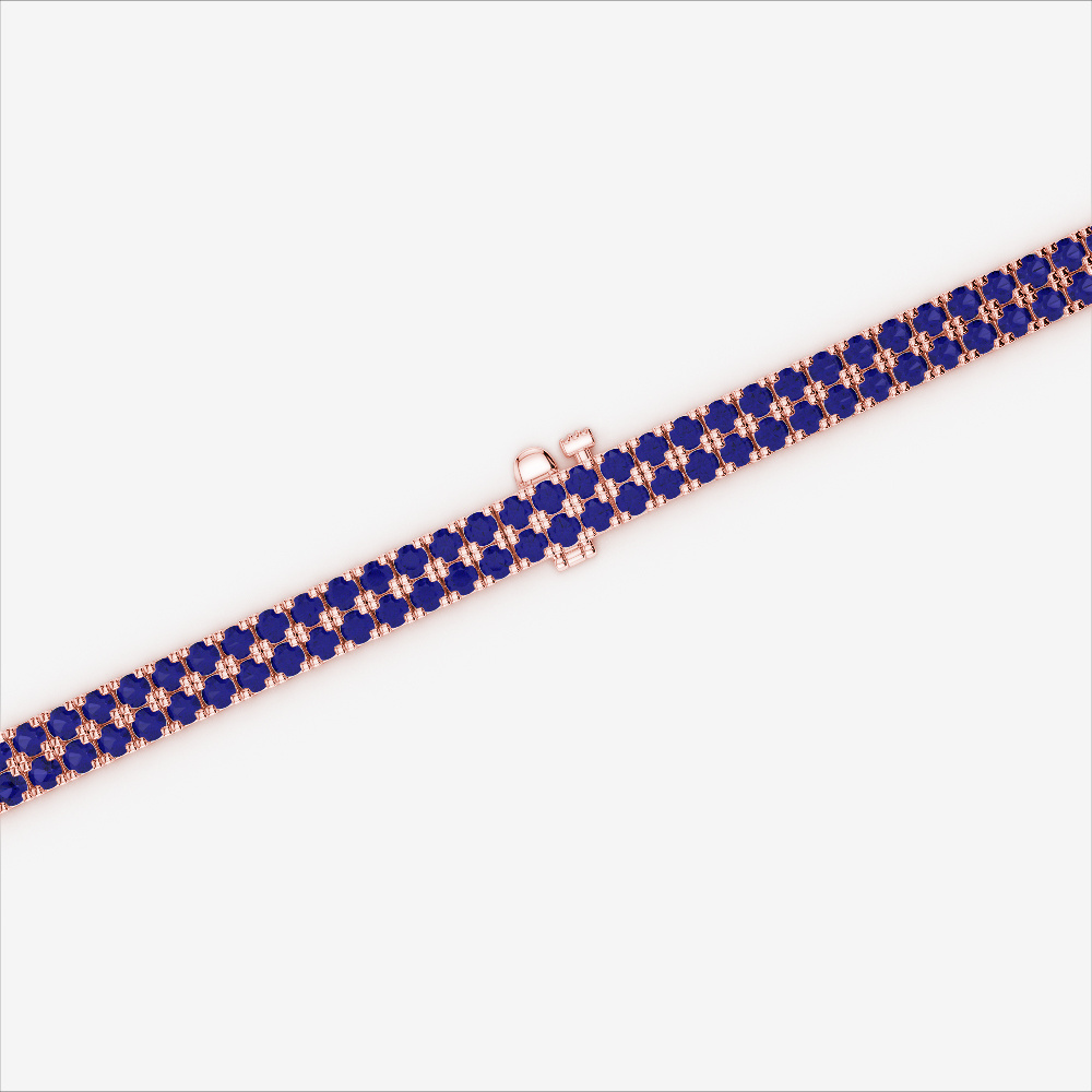 The Double Row Round Cut Blue Sapphire Tennis Bracelet features expertly pave set Blue Sapphires that shine with exceptional clarity and fire. Designed to highlight each stone’s brilliance, this bracelet delivers elegance and sparkle in a graceful silhouette.