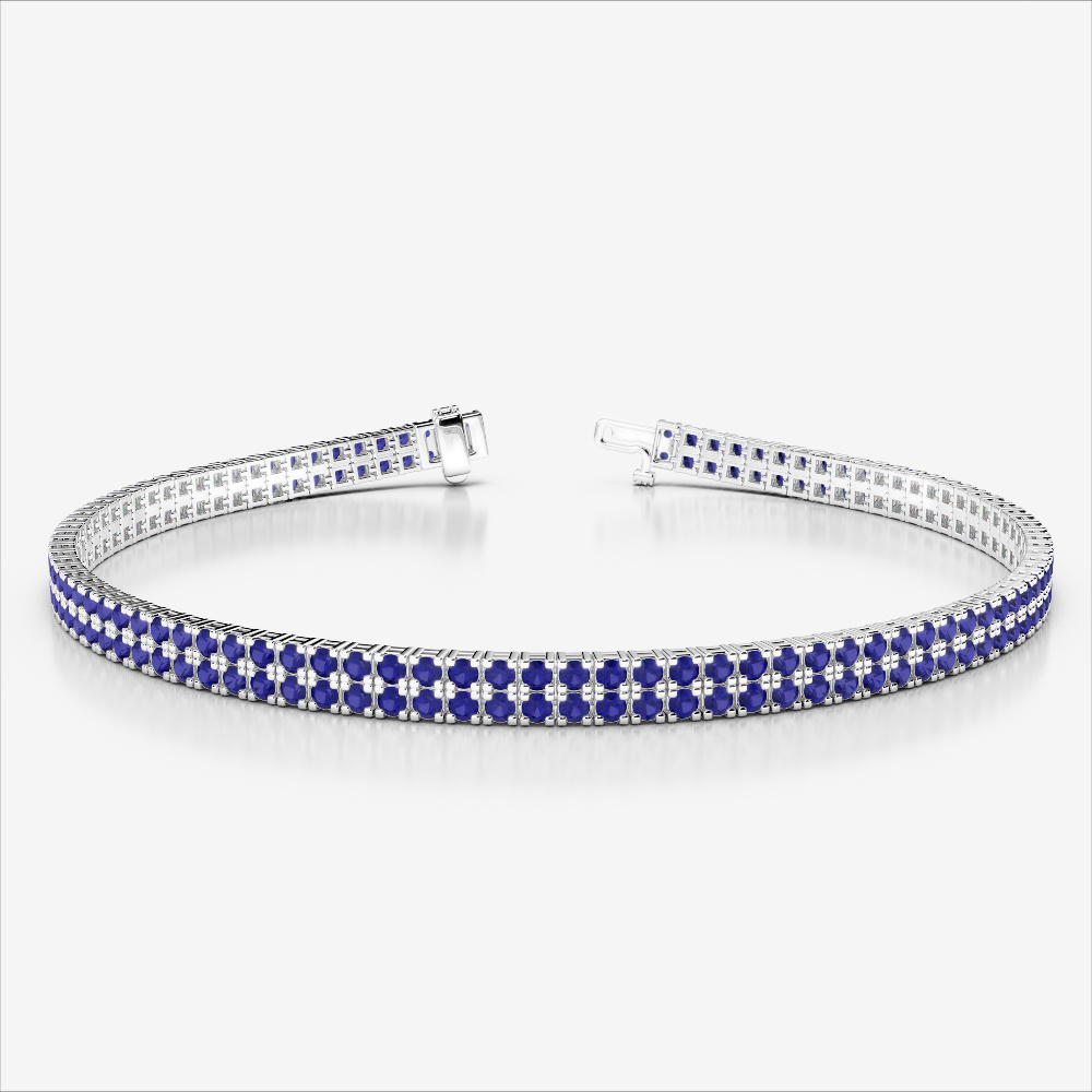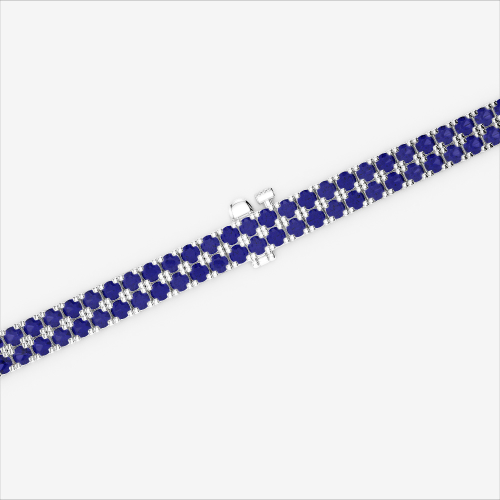 This Double Row Pave Set Round Cut Blue Sapphire Tennis Bracelet features Blue Sapphires that offer maximum sparkle. The classic design ensures it's suitable for any occasion, providing lasting beauty with a refined, modern twist.