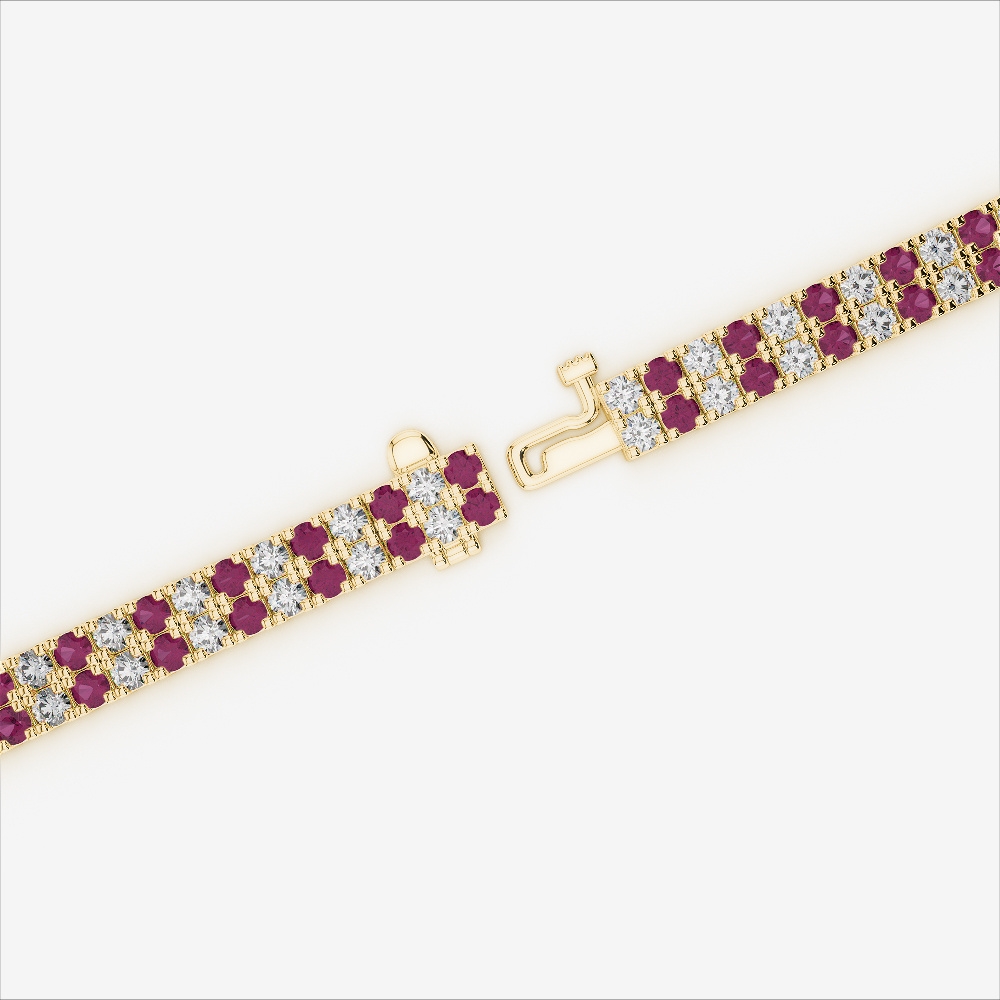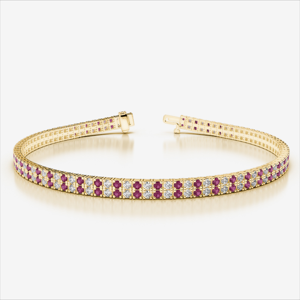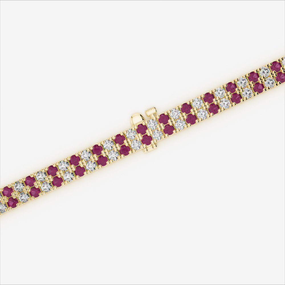 Presenting a distinguished piece of fine jewellery—the Double Row Pave Set Ruby and Diamond Bracelet. Featuring round-cut stones in secure prong settings, this bracelet offers a flawless balance of brilliance and craftsmanship. An ideal selection for significant occasions, it stands as a lasting symbol of elegance and refined taste.