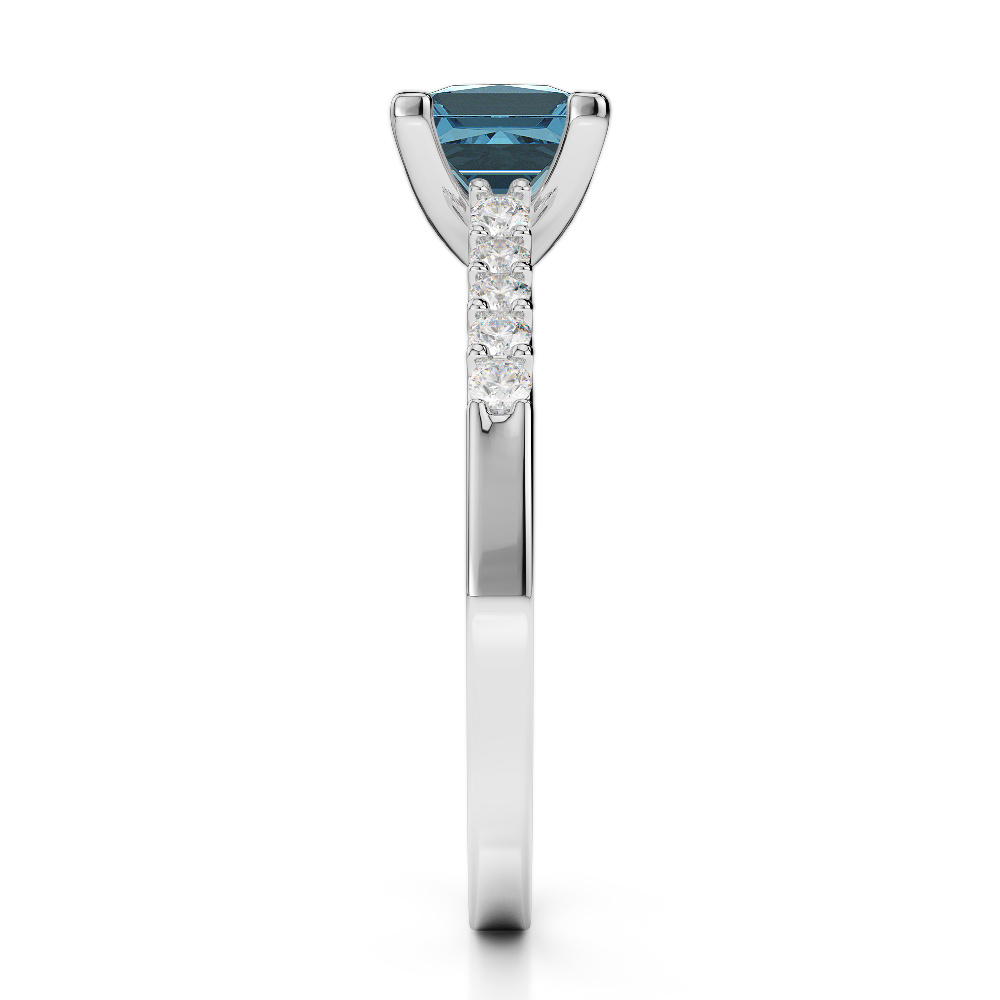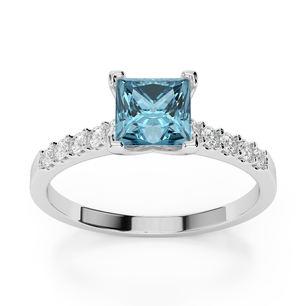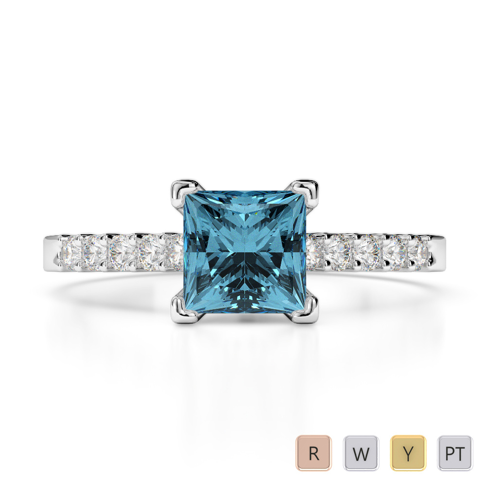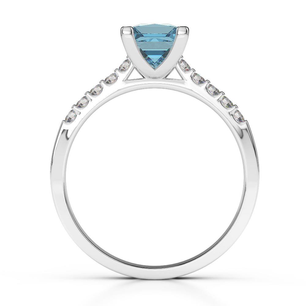 Princess Aquamarine and Round Diamond Engagement Ring With Diamond 0208