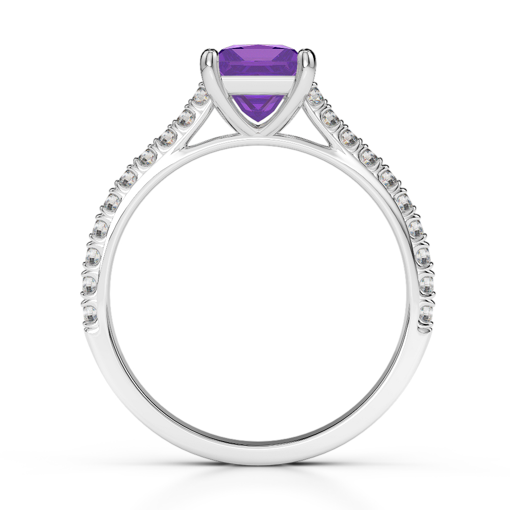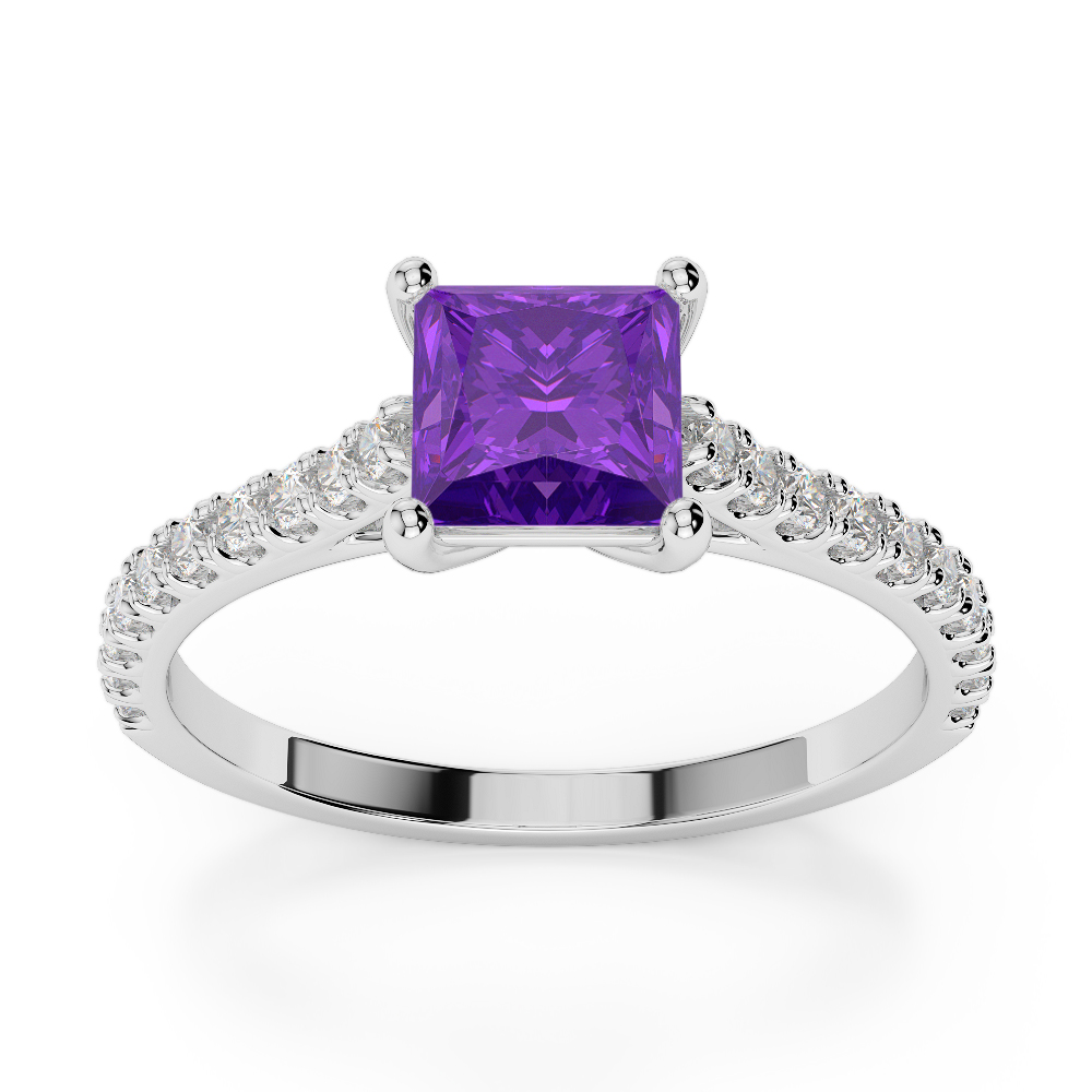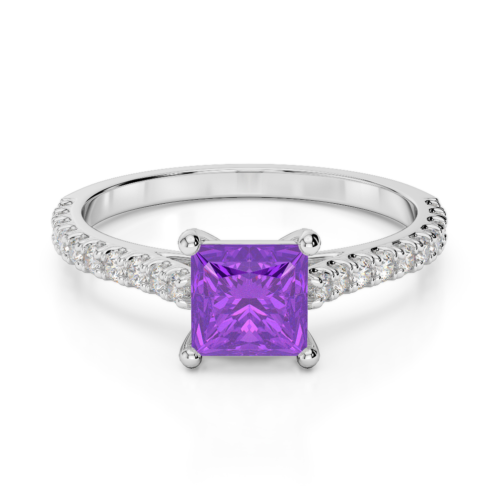 Princess Cut Amethyst Engagement Ring With Diamond 0215