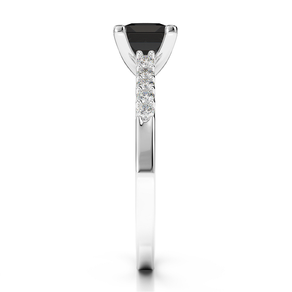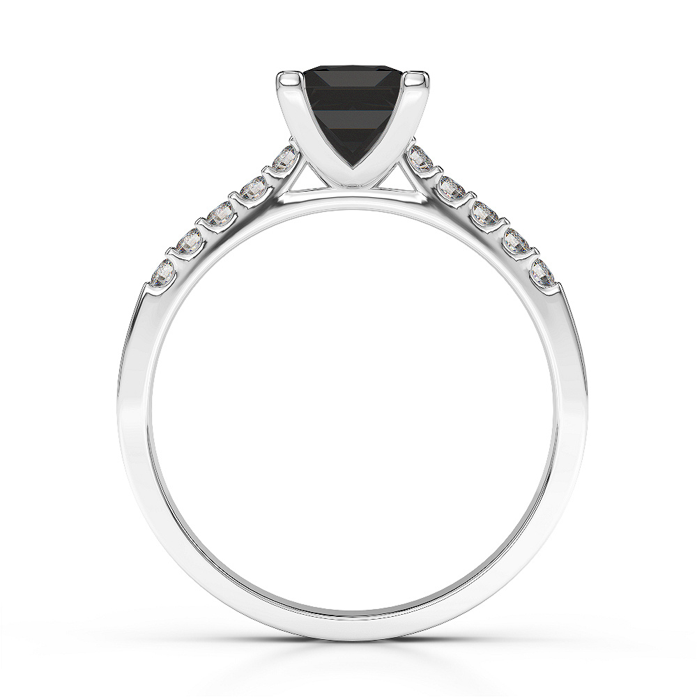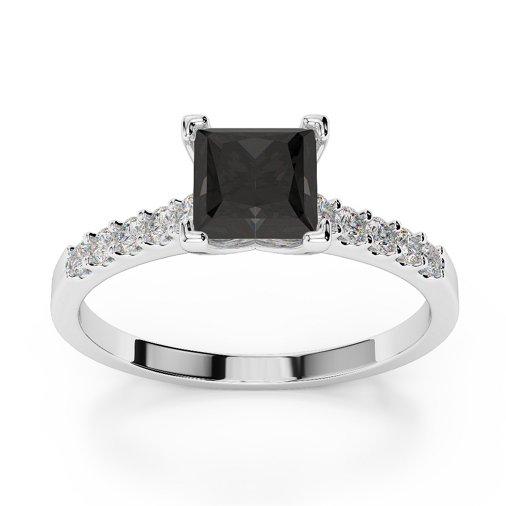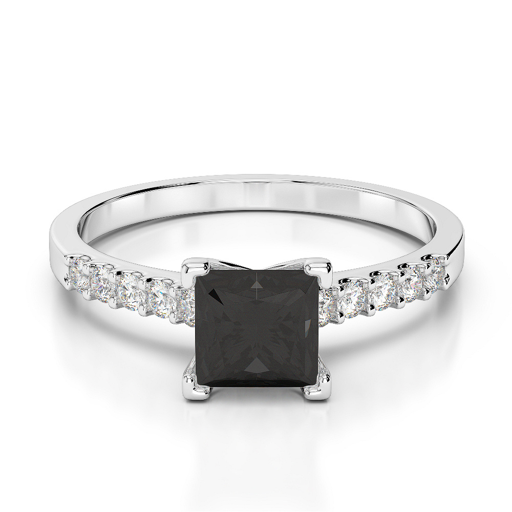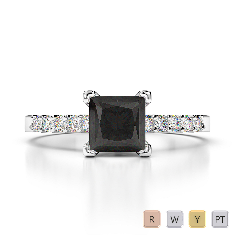 Indulge in the elegance of our Princess Cut Black Diamond And Diamond Engagement Ring, showcasing a bold Black Diamond secured in a refined prong setting that elevates the stone to maximize light and brilliance. Surrounded by sparkling diamonds, it radiates brilliance and timeless charm.